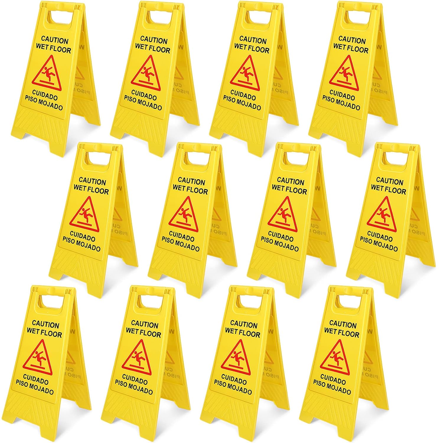 Macarrie 12 Pack Caution Wet Floor Sign Wet Floor Double Sided Cuidado Piso Mojado Foldable Bilingual Alert Sign for Commercial Use Indoors Outdoors, 11.5 x 23.62 Inches(Classic Style)