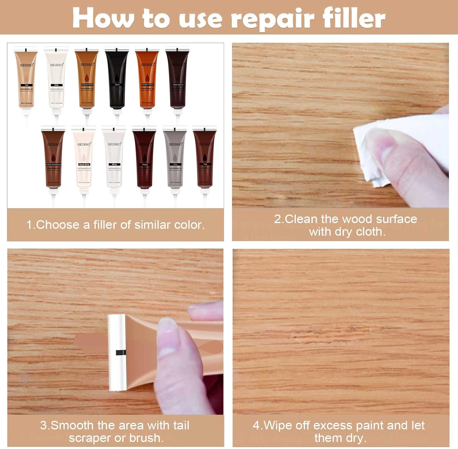 • This Furniture Repair Kit includes:12 colors wood filler,12 furniture markers touch up,2 brushes,1 scraper and 1 palette.Our wood repair kit can perfectly match the colors of your wooden furniture and meet all your wooden furniture restoration needs.