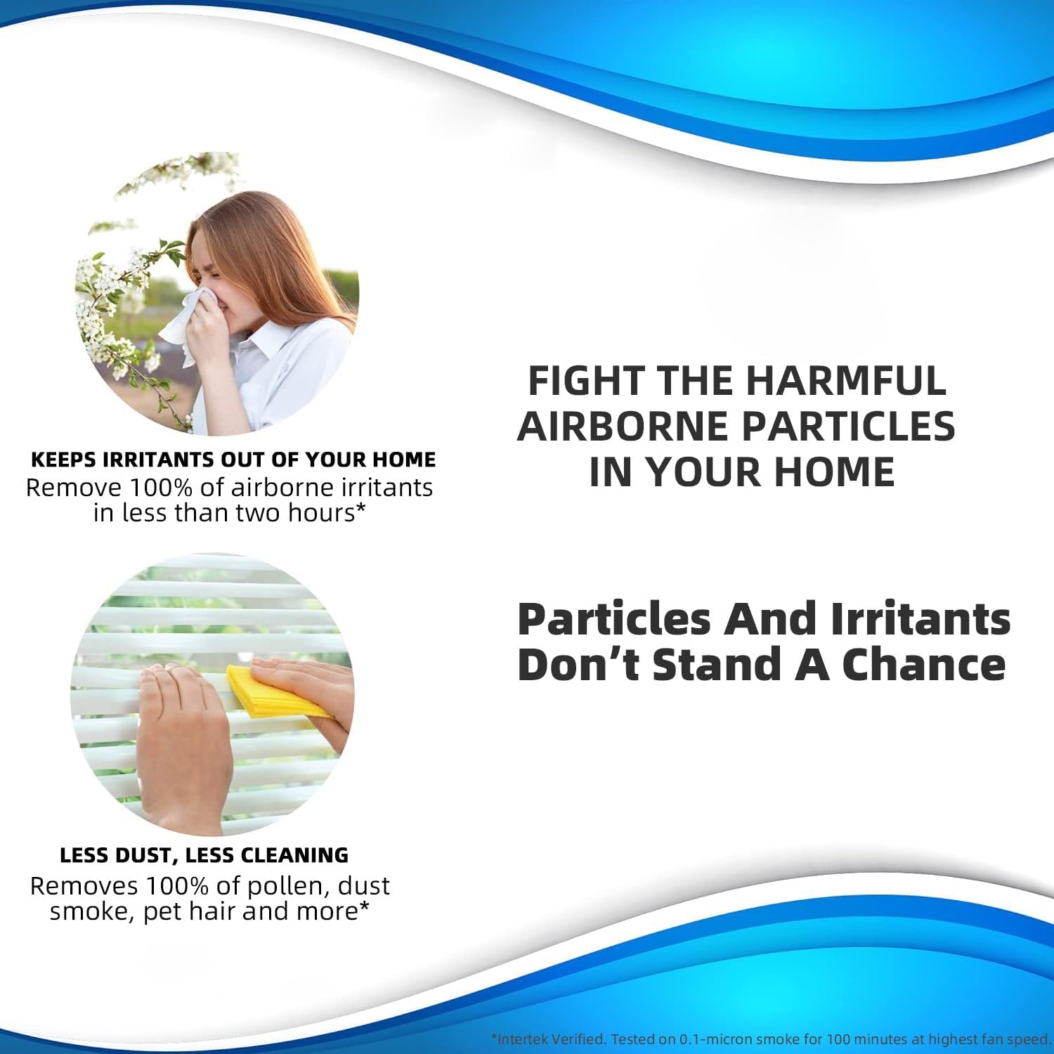• INTERTEK LAB CERTIFIED – E500 captures 100% of airborne particle pollutants as small as 0.1 microns including smoke, dust, and pollen. It removes pollen, dust, pet hair, harmful chemicals, and Ozone.
