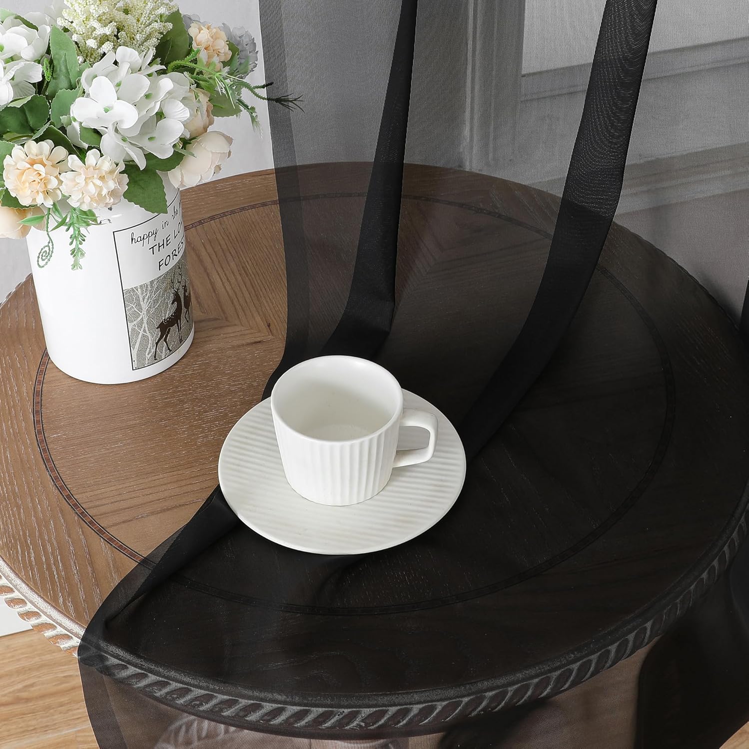 Chyhomenyc Black Sheer Window Curtain Panels 54 Inch 2 Panels, Light Filtering Solid Voile Curtains Drapes for Small Window/Bathroom/Living Room/Bedroom, Rod Pocket, Each 42Wx54L