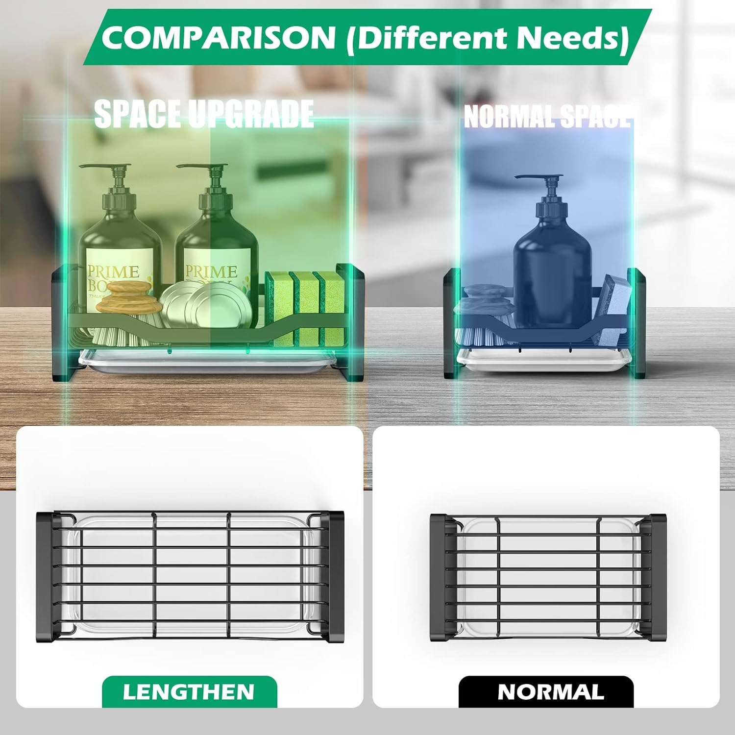 • 【Larger Capacity】Extended to 4.3 inches in width and 9.2 inches in length. Compared with other kitchen sink sponge holder , the length and width are improved. Therefore, this sponge holder can bring more storage space and improve the storage capacity. The Kontoyo sponge holder is perfect for storing sponges,dish soap,soap dispenser,brushes. Keep your kitchen sink counter clean and tidy