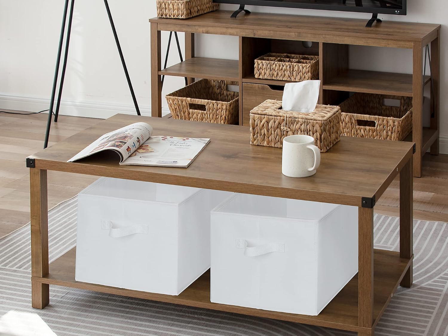 • The natural fiber and the inserted heavy-duty boards allow the storage bins to hold a weight of up to 30 pounds.