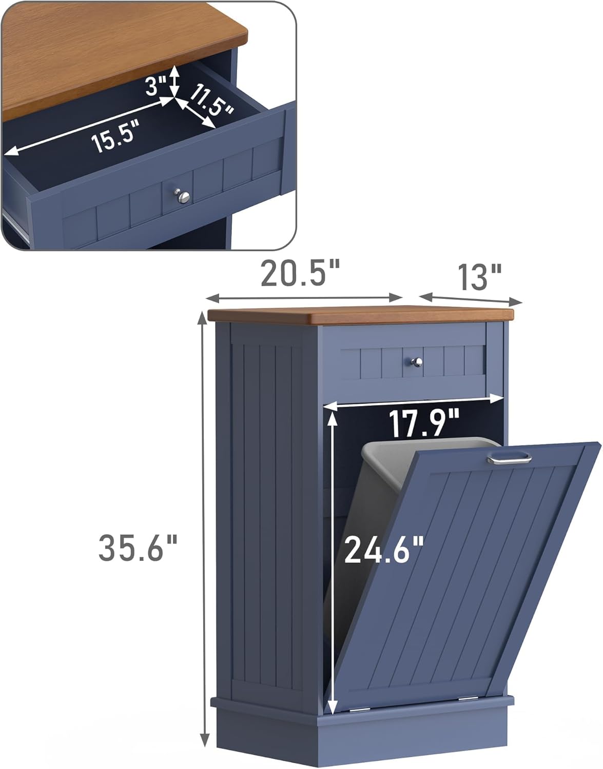 • 🏡【Space Saving and Concealment】Tilt-out trash cabinet (for 10 gallon trash cans), which can hide the trash cans well, keep the kitchen delicate and the floor clean. It also blocks odors from emanating, while your pets will never knock over the trash cans anymore
