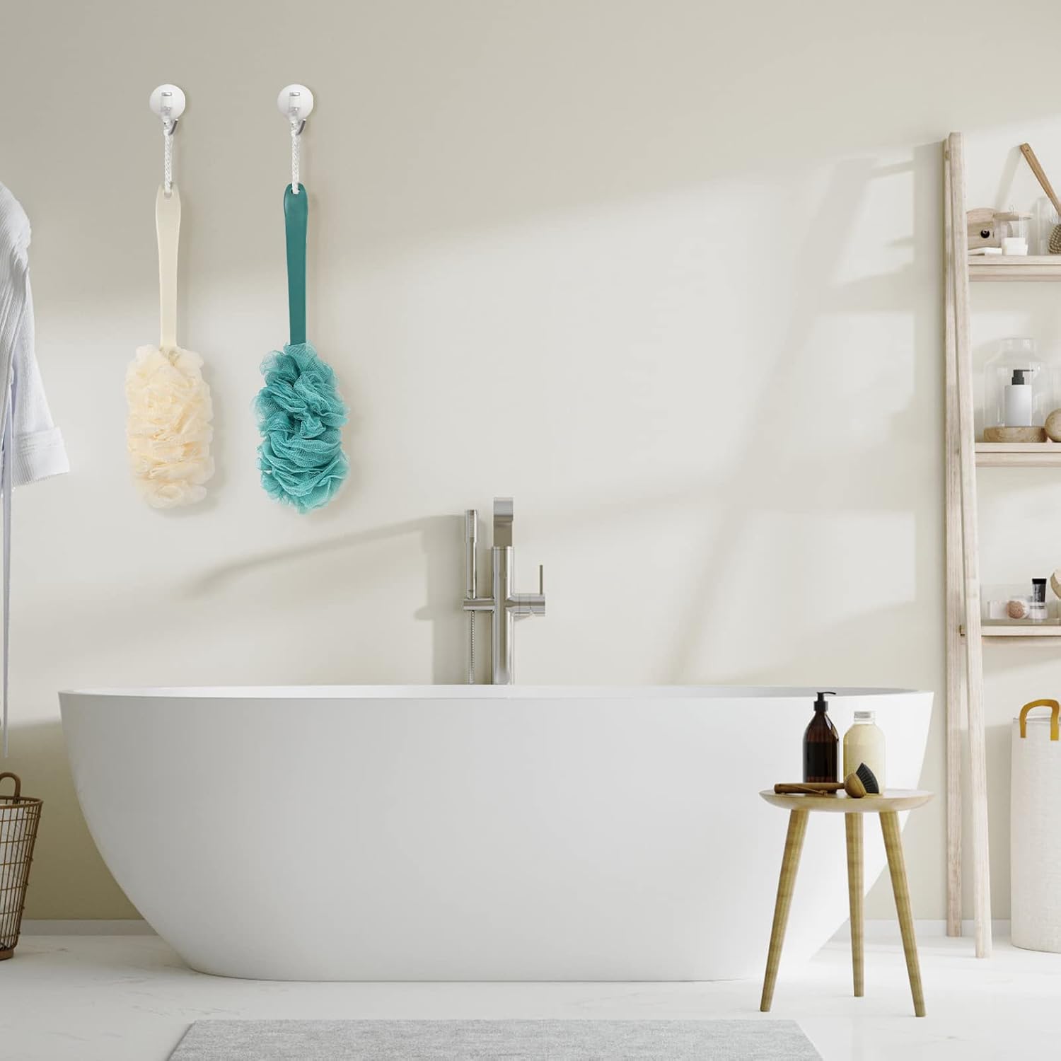 • 【long handled scrub brush for shower】 PIPUHA super soft exfoliating bath sponge is with long handle to strech out your back and soft loofah for men and women.
