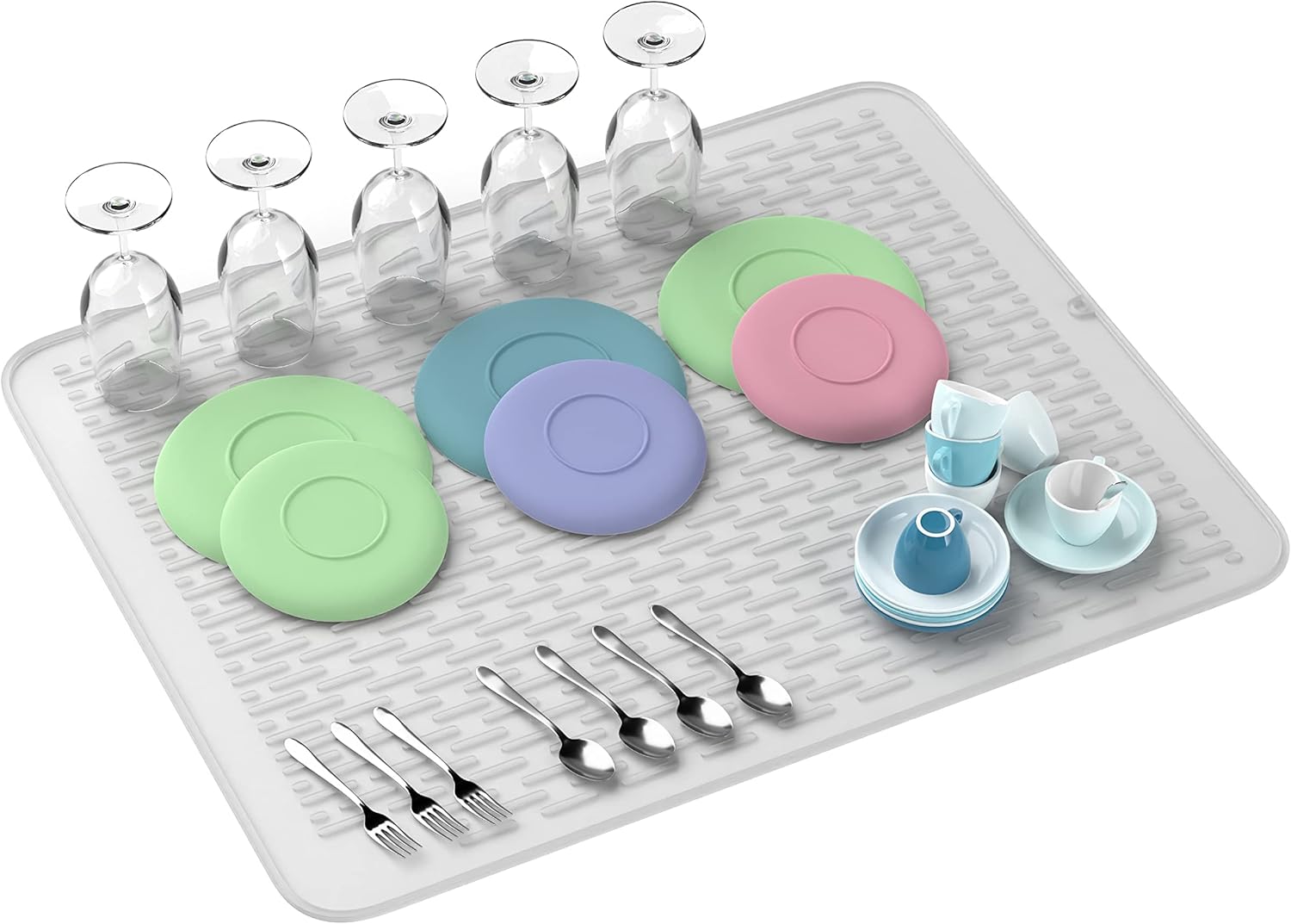 • Super-sized for greater protection and coverage. Extra large silicone mat for under dish drainer- protect your counters from water stains and damage.