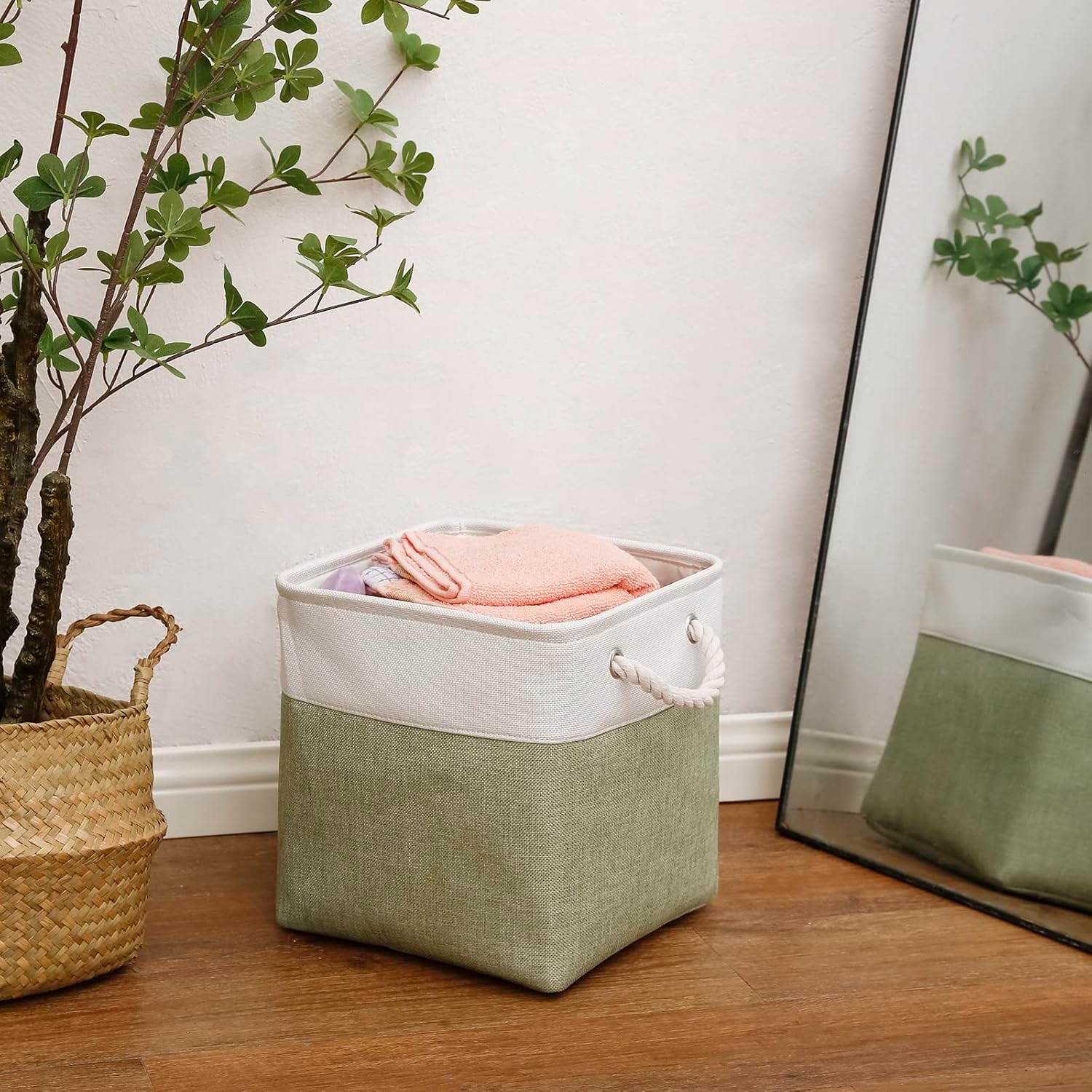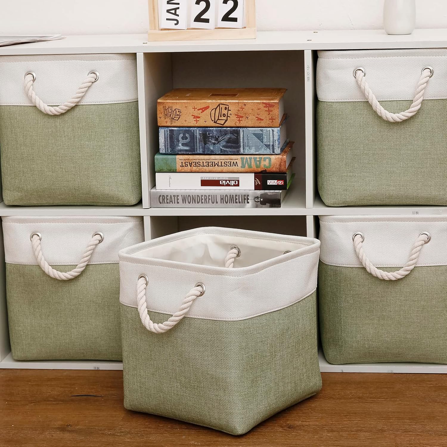 Cube Storage Bins, Collapsible Fabric Storage Cubes Bins, 11 Inch Cube Storage Bins with Handles, Foldable Storage Cubes (White/Green, 6Pack)