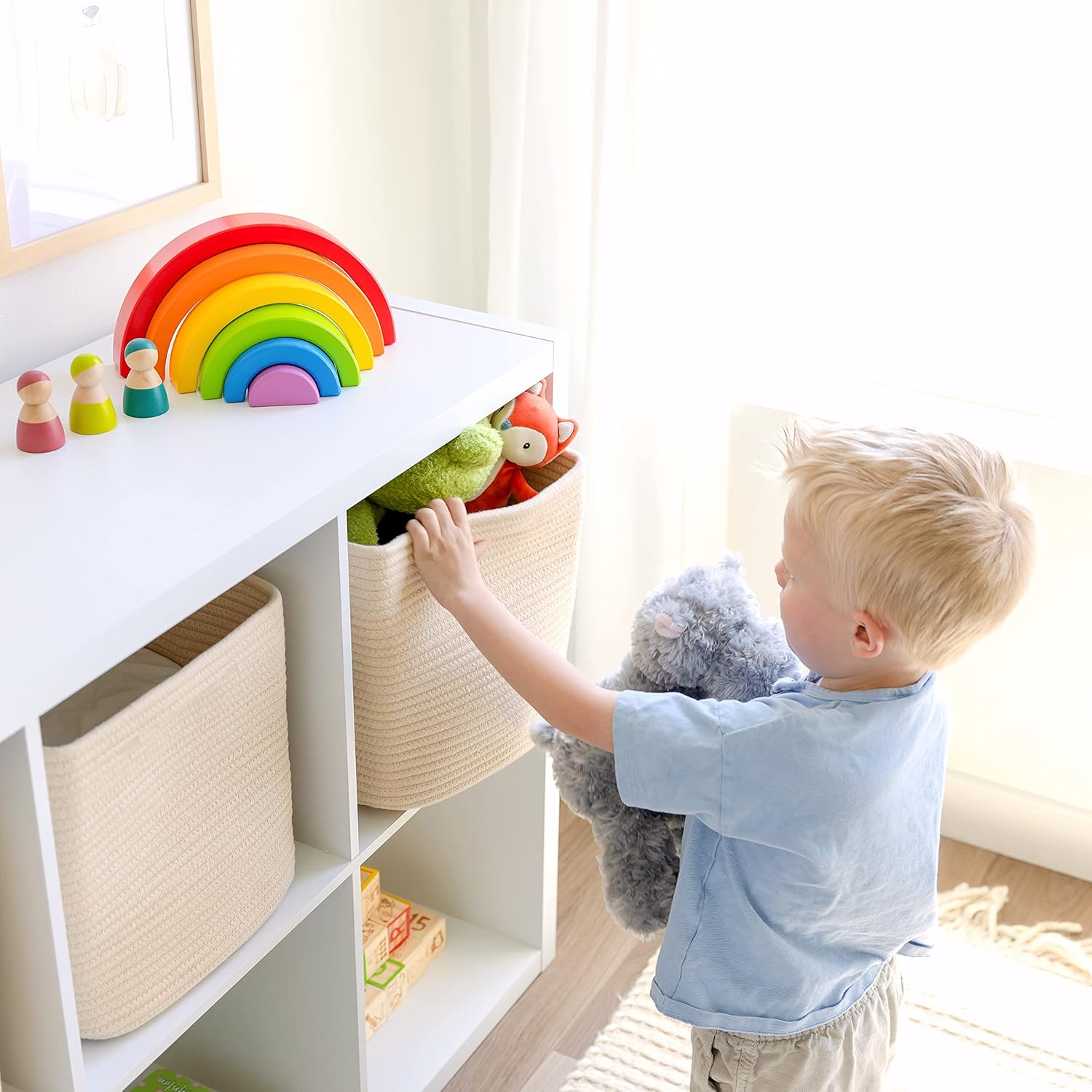 • Safe, Natural Cotton Storage Basket: Crafted from the highest quality material in the market, our toy bins are oh-so-sturdy and ready to take on little humans with a knack for nom-ing. They’re 100% safe, so you can rest easy if teething toddlers take a nibble.