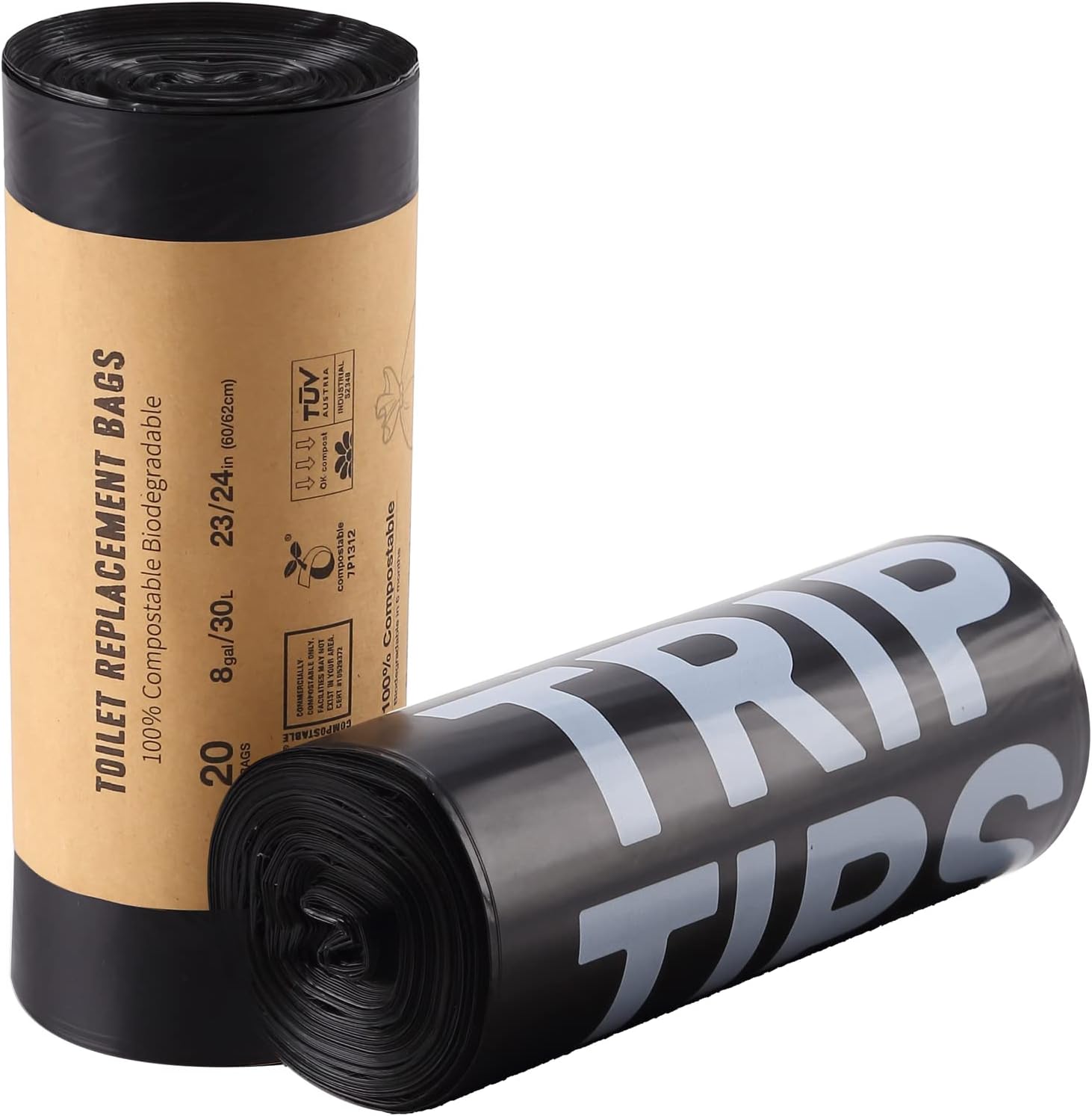 TRIPTIPS Biodegradable Portable Toilet Bags 8 Gallon|40 Count Camping Toilet Bags for Portable Potty,Leak-Proof 100% Compostable Toilet Bags 5 Gallon Bucket,Toilet Waste Bags for Outdoors
