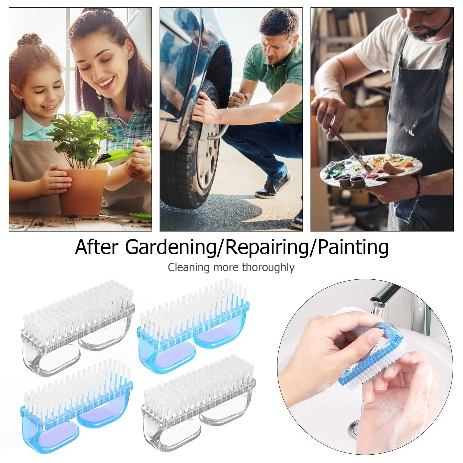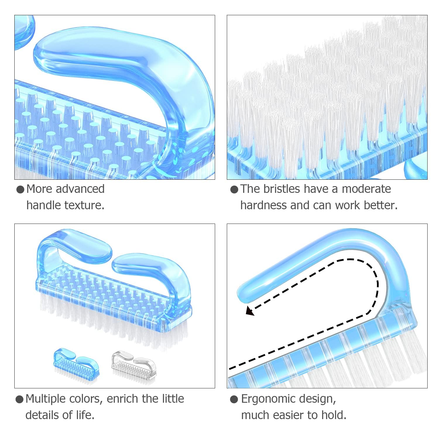• 【New Design】: We have made some improvements. The Handle fingernail brushes have a larger gripping space, much easier to hold and convenient to use.