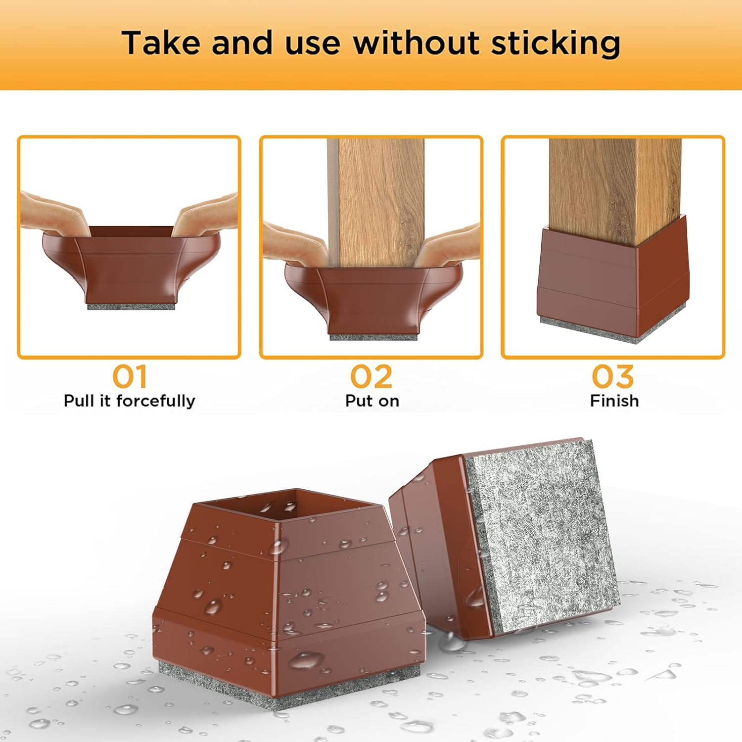 Square Chair Leg Protectors for Hardwood Floors, 16 Pcs Silicone Felt Furniture Leg Cover,(Brown 1 1/2").