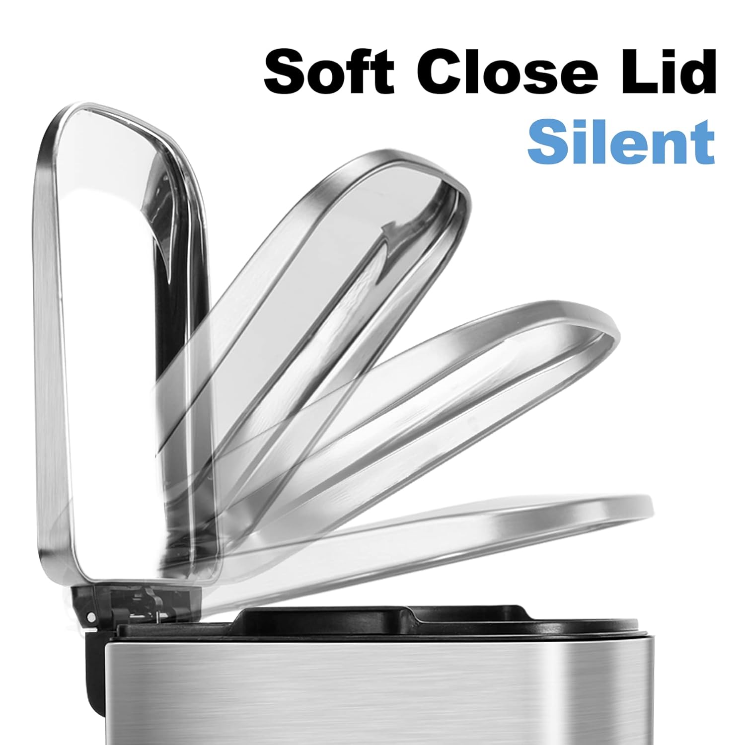 TrashAid Small Bathroom Trash Can with Lid Soft Close, 6 Liter / 1.6 Gallon Stainless Steel Garbage Can Narrow with Removable Inner Bucket, Step Pedal (Silver)