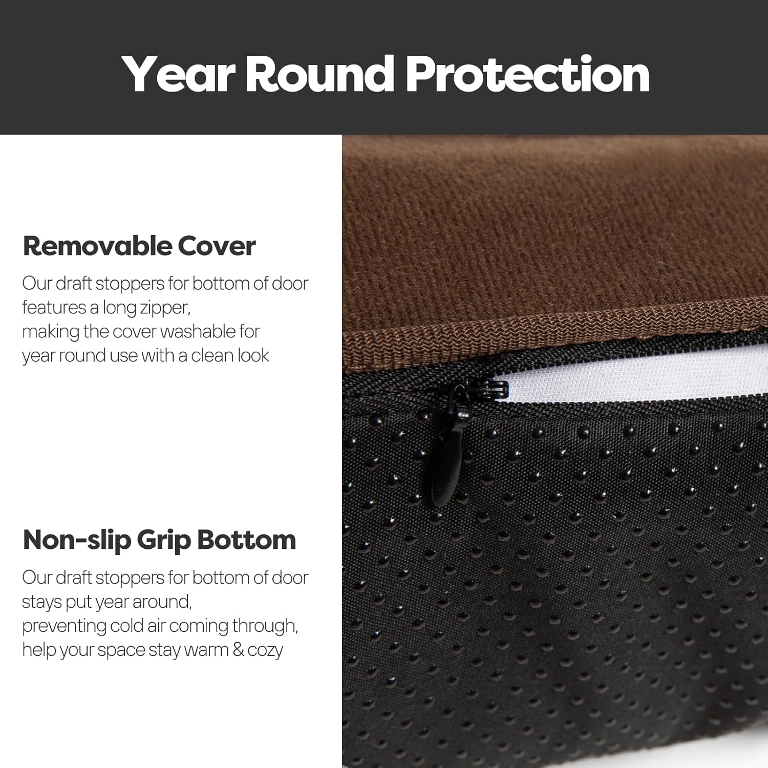 • Year Round Protection: Features non-slip grip bottom, lay evenly on floor year round, prevent draft air coming through. Comes with a removable & washable cover for whole-year clean look