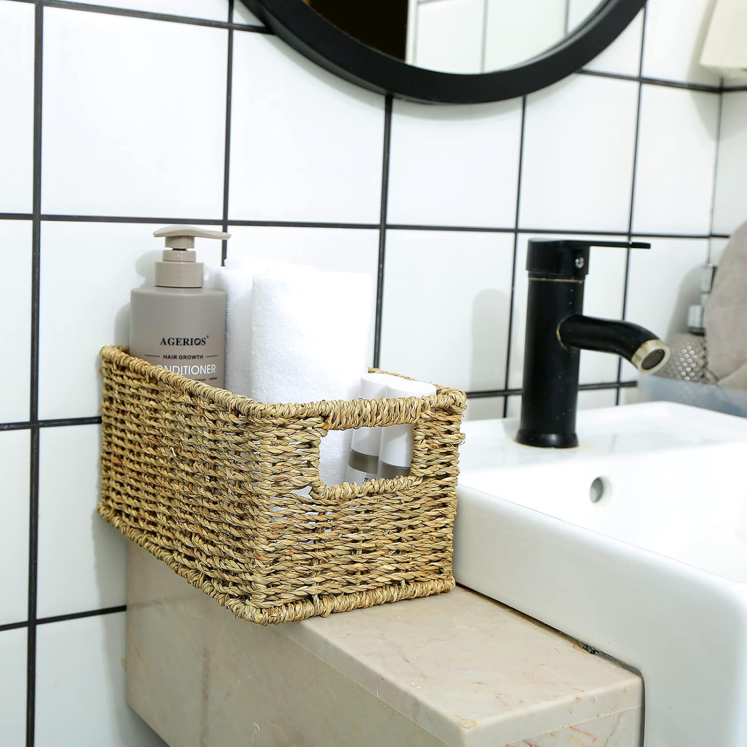 • Natural and Sustainable: these storage baskets for shelves are made of naturally grown seagrass in a woven pattern, the material is natural and friendly to the environment.