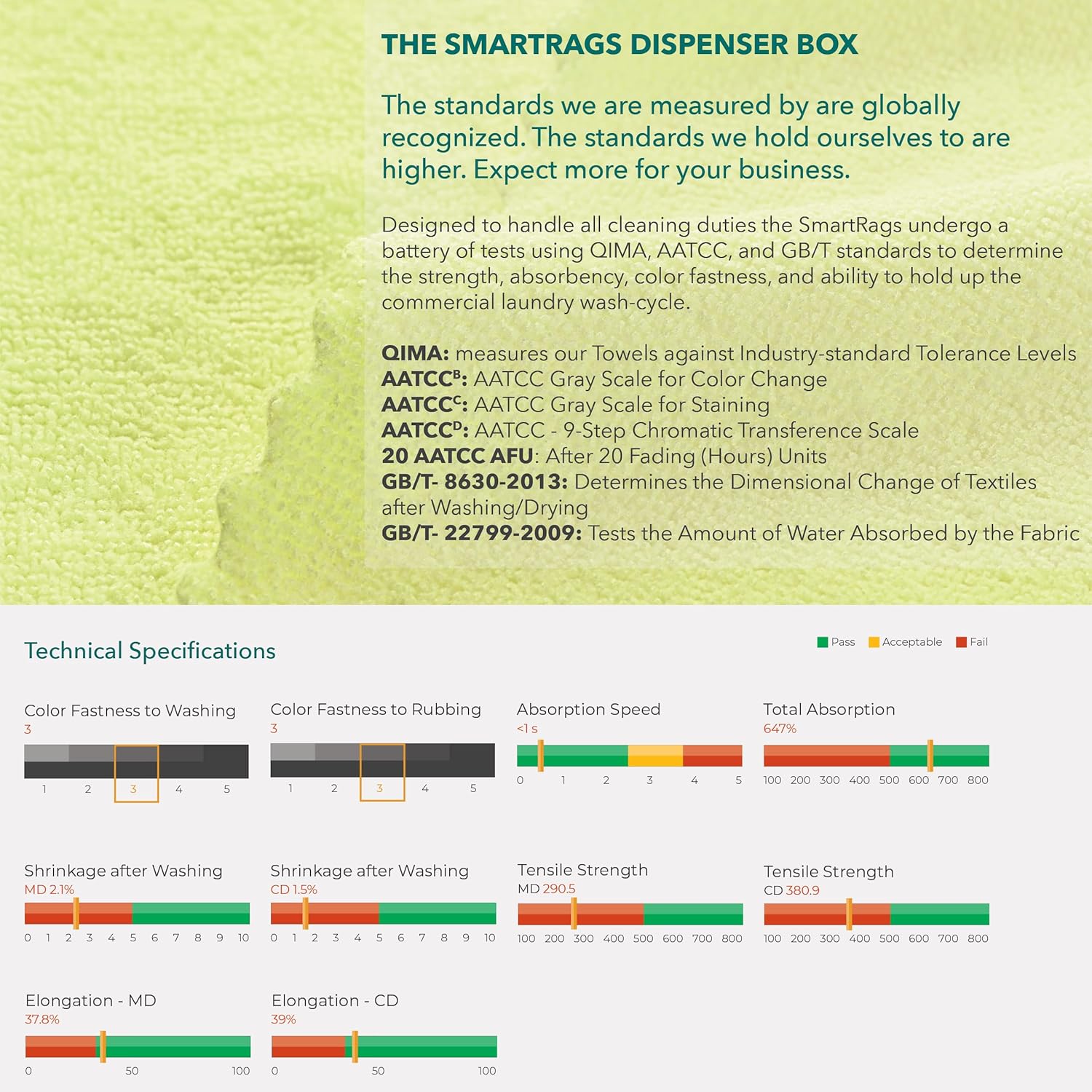 • BETTER MICROFIBER CLOTHS: At 12" x 12", compact 180 GSM microfiber cloths provide ample cleaning surfaces. A compact dispenser box is easily stored in drawers and cabinets. When you clean with SmartRags, you're assured a durable, high-performance cleaning cloth.
