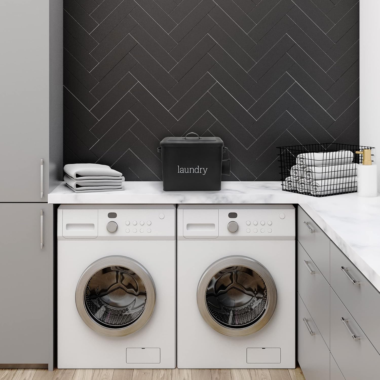AuldHome Design Enamelware Laundry Powder Container (Black), Enamelware Detergent Bin w/ Scoop