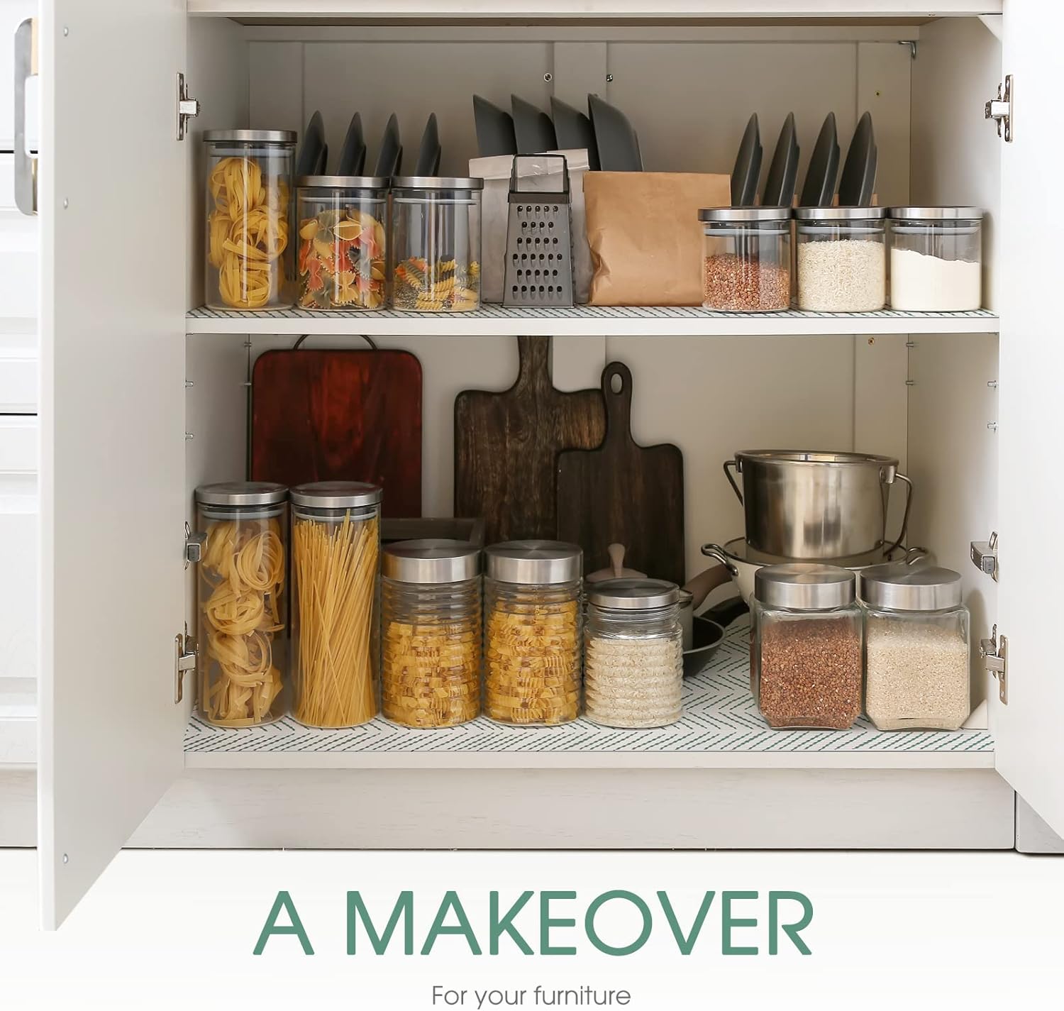 Glotoch Shelf Liners for Kitchen Cabinets Non-Adhesive,12in x 20FT Non Slip Shelf Liner Waterproof Contact Paper for Cabinets and Drawers,Pantry, EVA Wire Shelf Liners,White and Green Herringbone