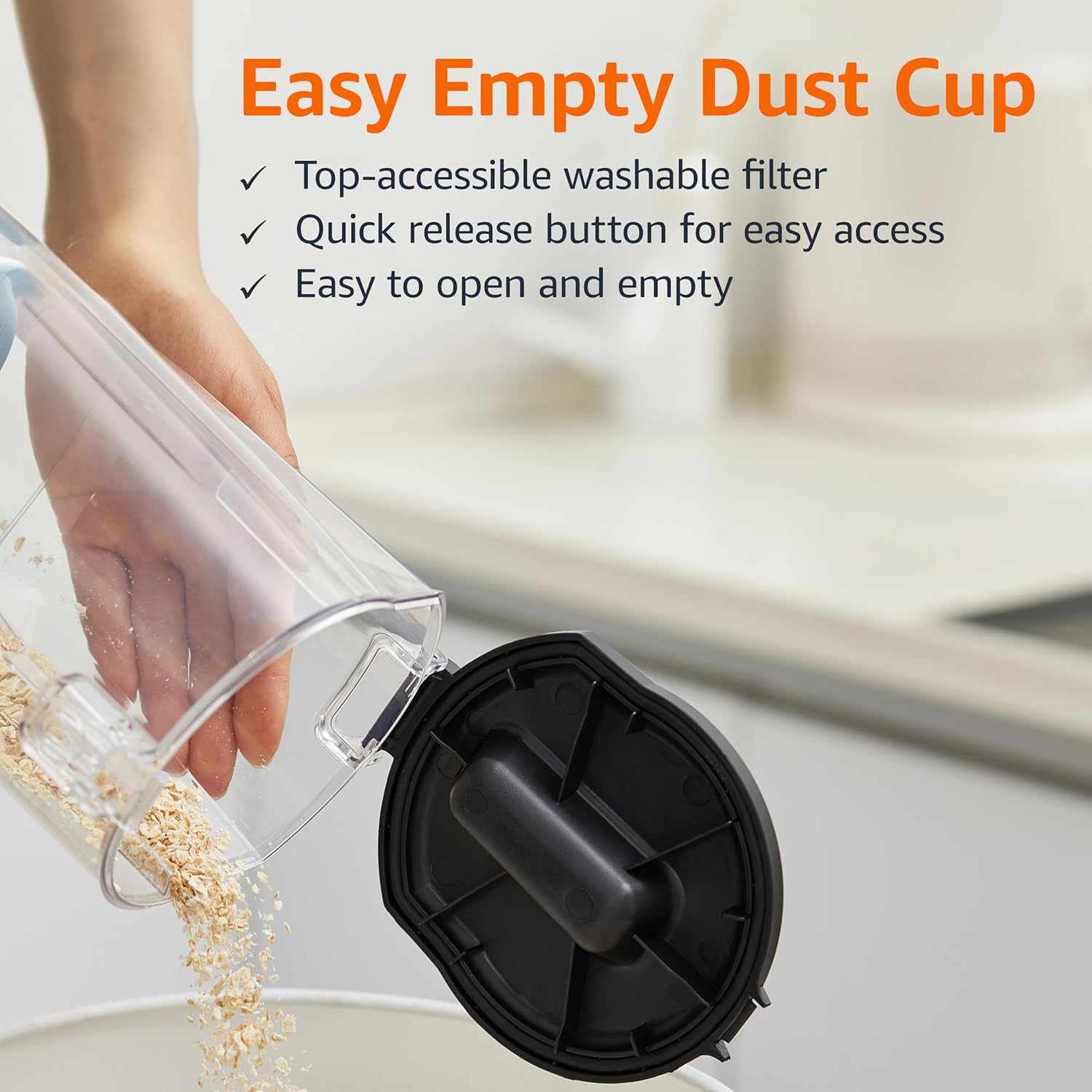 • LARGE CAPACITY DUST CUP: These vacuum cleaners for carpets and floors have a 1.7L dust cup that allows for longer cleaning without frequent emptying, and features a quick-release button for easy disposal of collected debris