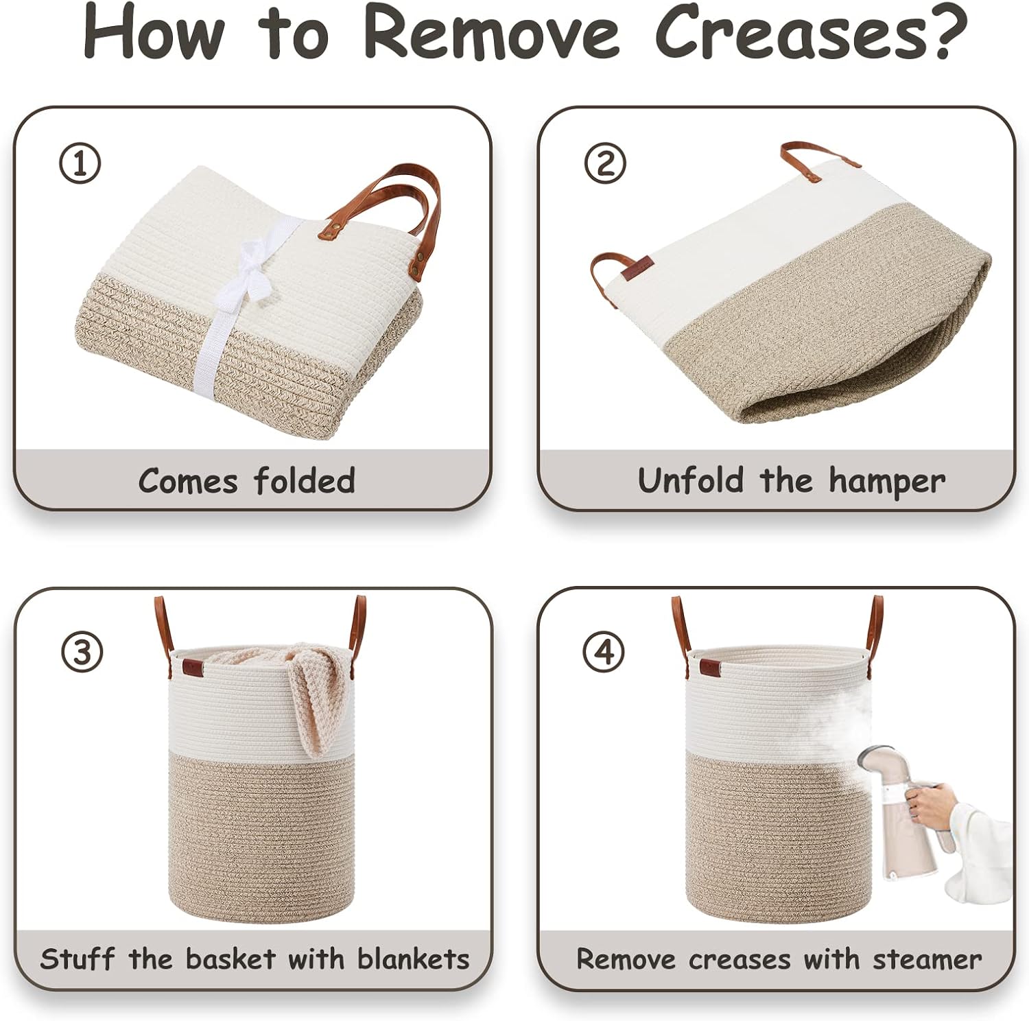 • ❤【WAY TO RESTORE ELEGANT SHAPE】 Our collapsible baskets are folded during shipping. Please fill the hamper with clothes or blankets for a period of time. If you want to remove creases from the surface of the tall basket, you can use a steamer.