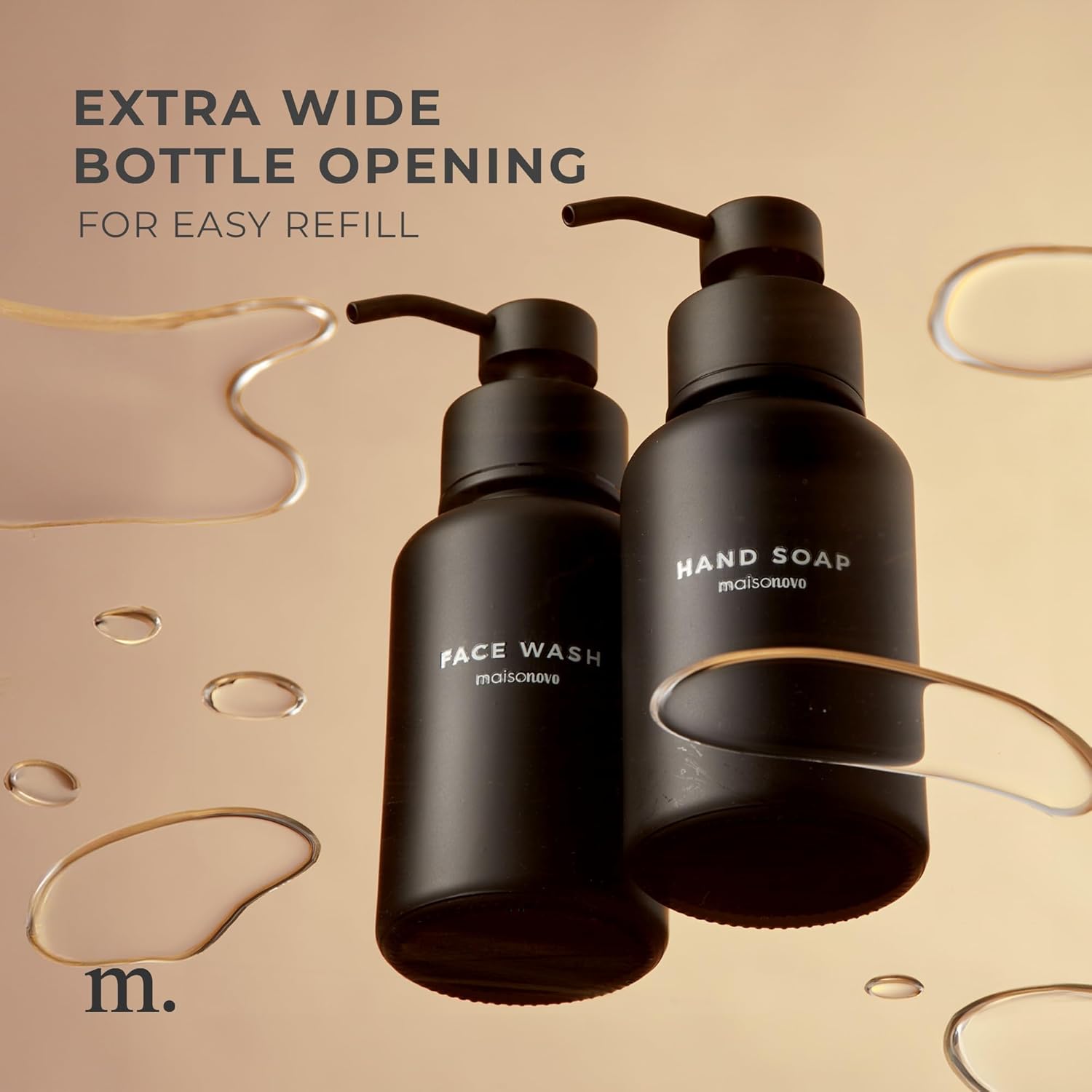 • This Set Includes: The MaisoNovo glass foam pump bottle set includes: two (2) 14oz foaming dispensers, and four (4) waterproof face wash and hand soap labels.