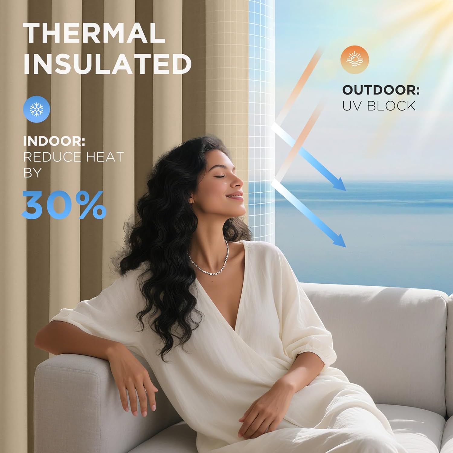 • 【Blackout Performance】Your go-to choice for adjusting indoor light! These curtains block over 75% of sunlight and outdoor glare, creating a cozier atmosphere in bedrooms, living rooms, and more. They also provide excellent privacy protection for your home. Pro Tip: Darker-colored curtains offer even better blackout effects.​