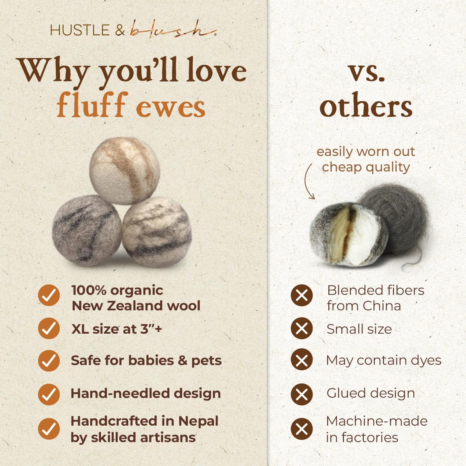 • ETHICALLY MADE FOR A BETTER WORLD: Feel good about your purchase with wool dryer balls laundry reusable crafted with cruelty-free shearing and fair-trade practices. Our dryer balls laundry reusable anti static replace wasteful alternatives like dryer sheets, offering a high-quality solution you can trust. Choose our laundry dryer balls that deliver both style and performance.