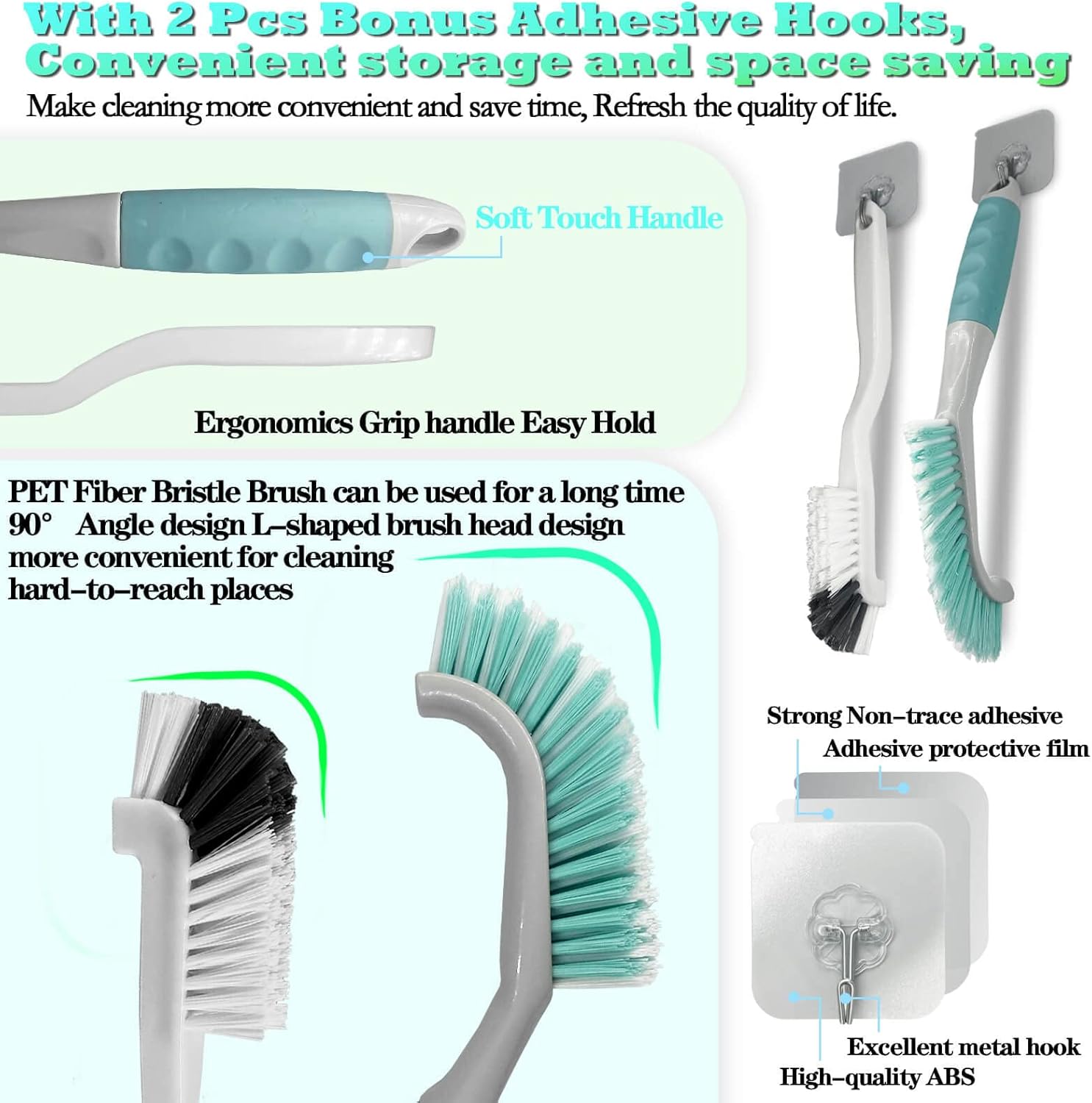 • 【User Friendly Design】Ergonomic Design-Comfortable handle. The Handles are made of High-quality plastic ABS and tough PP material, the brushes are made of premium PET fiber bristles, which are strong and durable without losing bristle. Easy to use, easy to store only hanging hold on adhesive hooks.