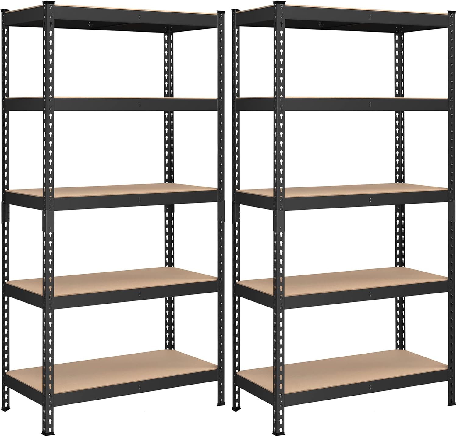 • [Stable and High Load Capacity] The sturdy steel frame and thick MDF panels of this set of two 5-tier shelving units offer a maximum weight capacity of 462 lb per shelf, while reinforced crossbeams provide extra stability