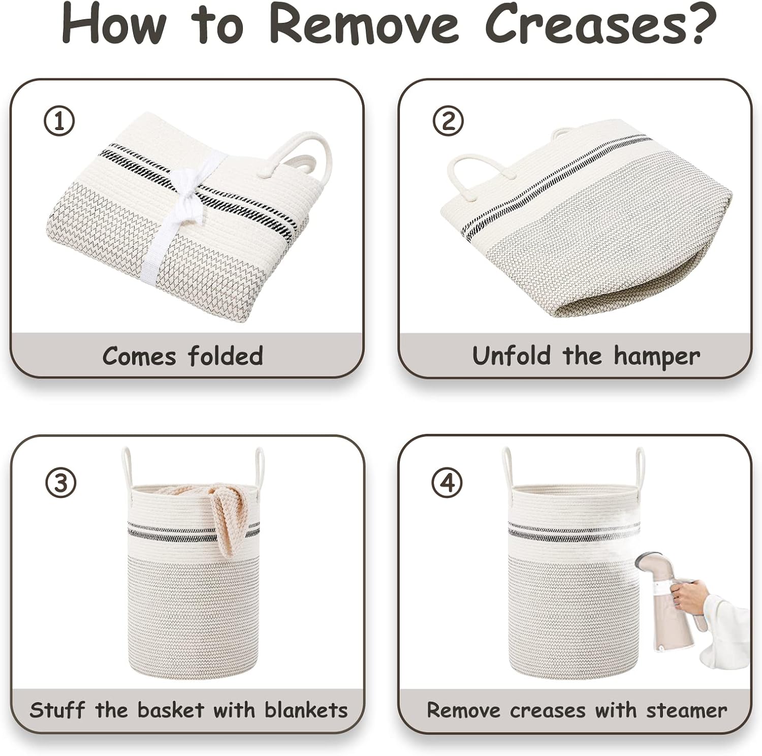 • ❤【Restore Elegant Shape】 To improve shipping efficiency, foldable woven rope hampers are packed compactly. You can put some blankets or small quilts in it and give it some time to regain its shape. Iron is a great idea to remove the creases.