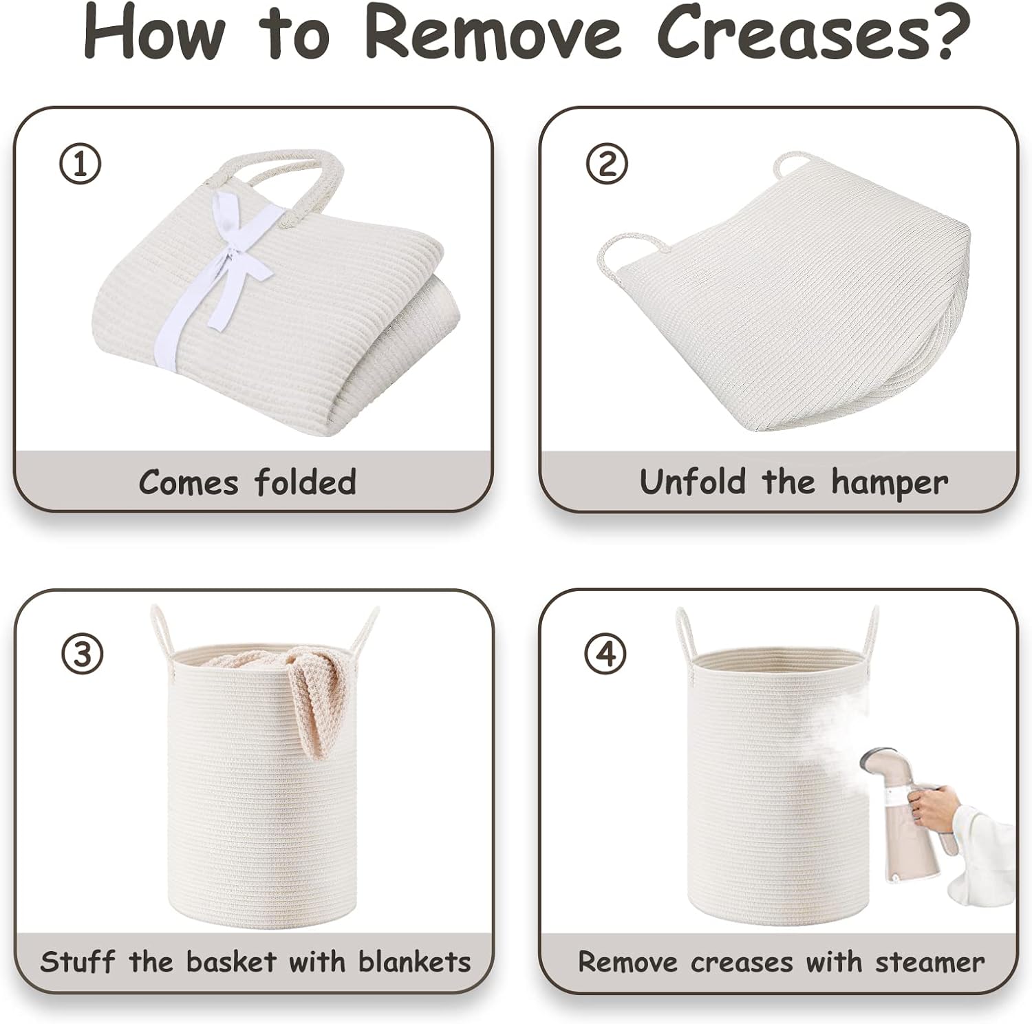 • ❤【Restore Elegant Shape】 To improve shipping efficiency, foldable woven rope hampers are packed compactly. You can put some blankets or small quilts in it and give it some time to regain its shape. Iron is a great idea to remove the creases.