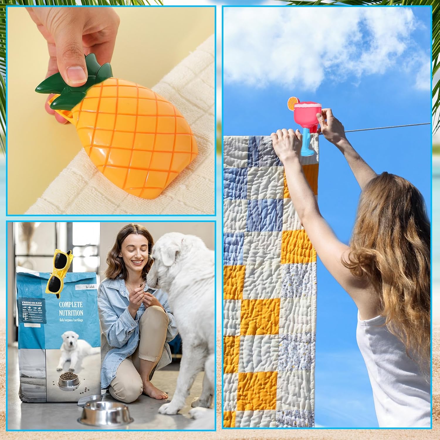 • Cute and Funny: the decorative beach towel clips adopt champagne glass, lemon glass, sunglasses, pineapple styles, look cute and funny, you can use them to clip clothing, towels, and bedding