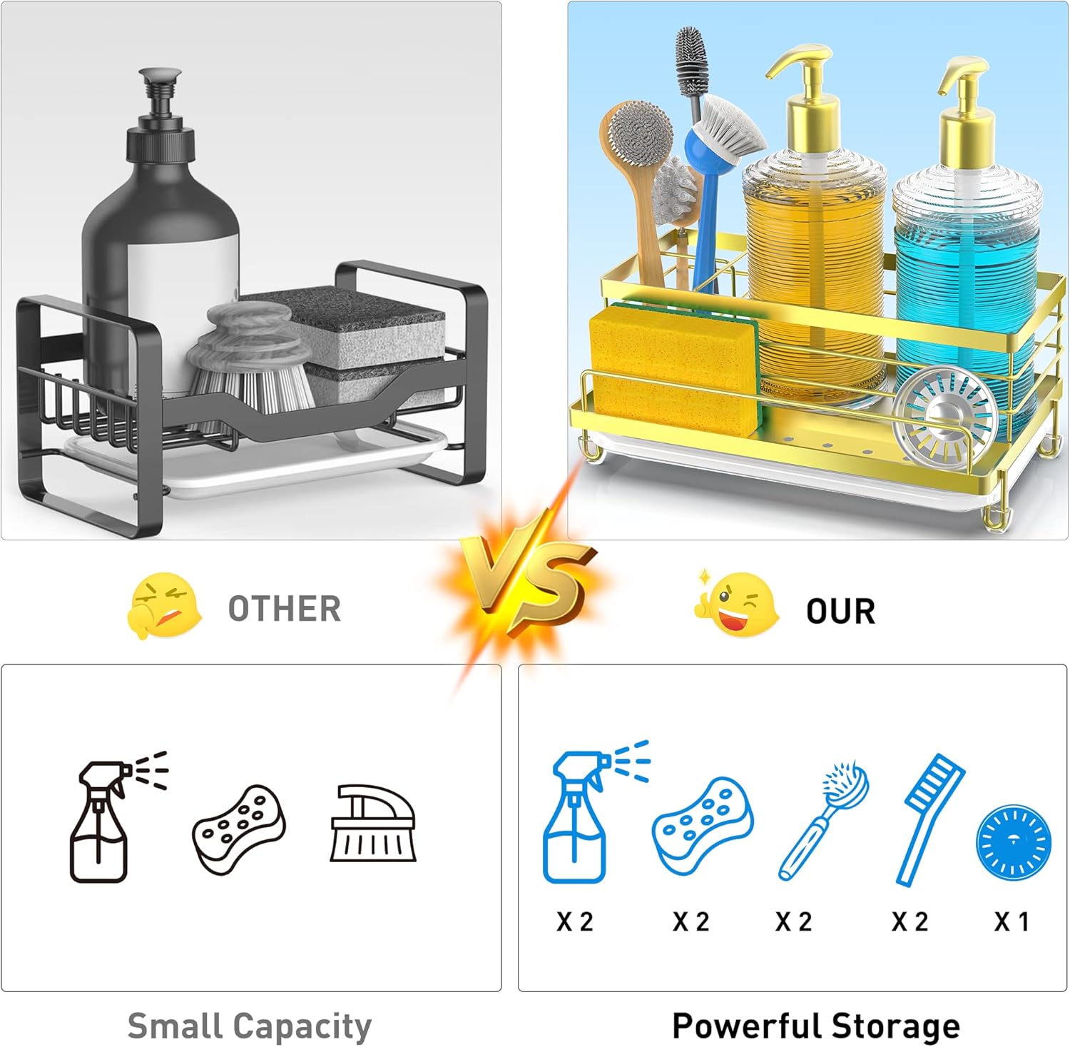 • 【MORE STORAGE SPACE 】Compared to other kitchen sink caddy CISILY sponge holder expands to 5.3 inches wide and 9.49 inches long, enhancing its kitchen organization function, and allowing flexible placement of sponges, dish soap, soap dispensers, brushes, sink plugs and more. Make the most of every inch of space and make your kitchen look cleaner.