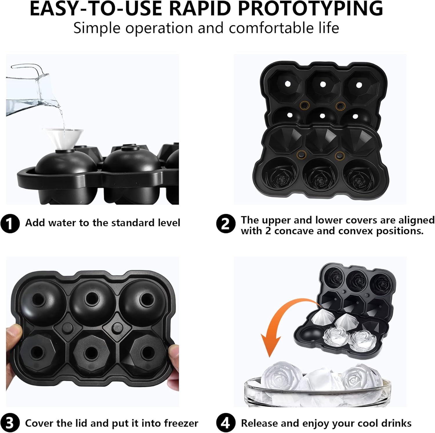 • [Easy to Release & Clean] - Upgrade connection edge slot between the bottom and the cover work great to prevent water from spilling. Rose ice ball form comes with a tiny funnel to fill each rose section, put it in freezer for 5-6 hours. Easy to pull apart and take out the ices perfectly once frozen.