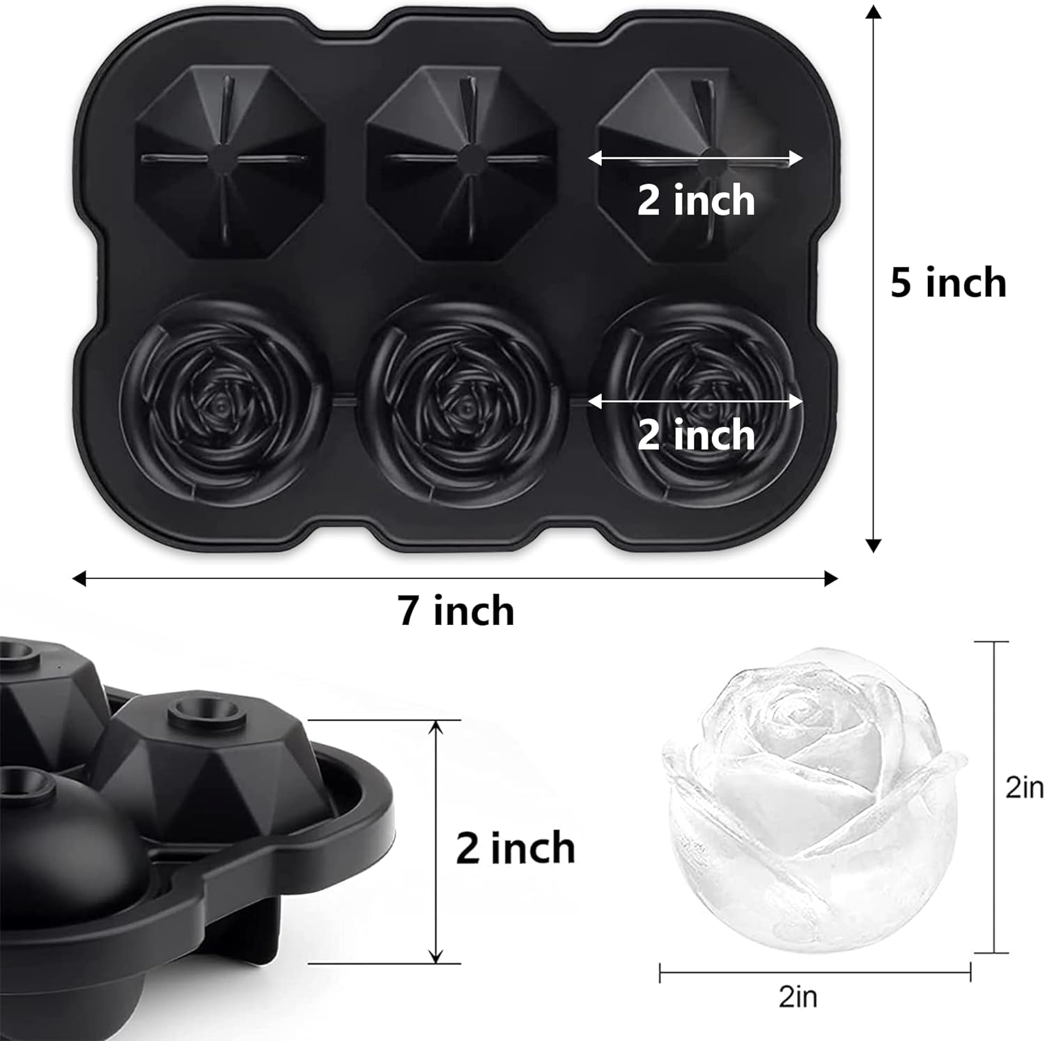 • [2inch 3 Large Rose & 3 Diamond Ice Cubes]- This ice cube molds make 3 Rose & 3 Diamond ice balls at one time. The diameter of each ice is 2 inch. Amazing beautiful rose ices melt much slowly leaving floating in drinks can create a more romantic atmosphere for your party. prefect for cocktails, iced coffee, iced tea, fruit juice, punch, Scotch Whisky, Bourbon, or Blended Whiskey.