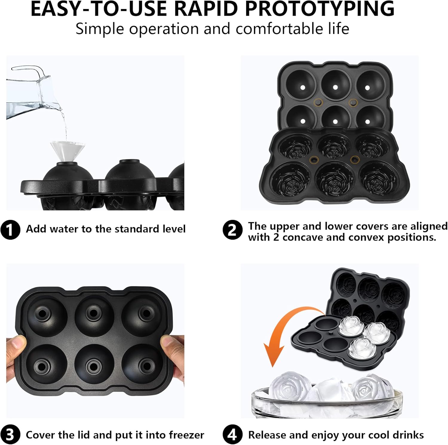 • [Easy to Release & Clean] - Upgrade connection edge slot between the bottom and the cover work great to prevent water from spilling. Rose ice ball form comes with a tiny funnel to fill each rose section, put it in freezer for 5-6 hours. Easy to pull apart and take out the ices perfectly once frozen.