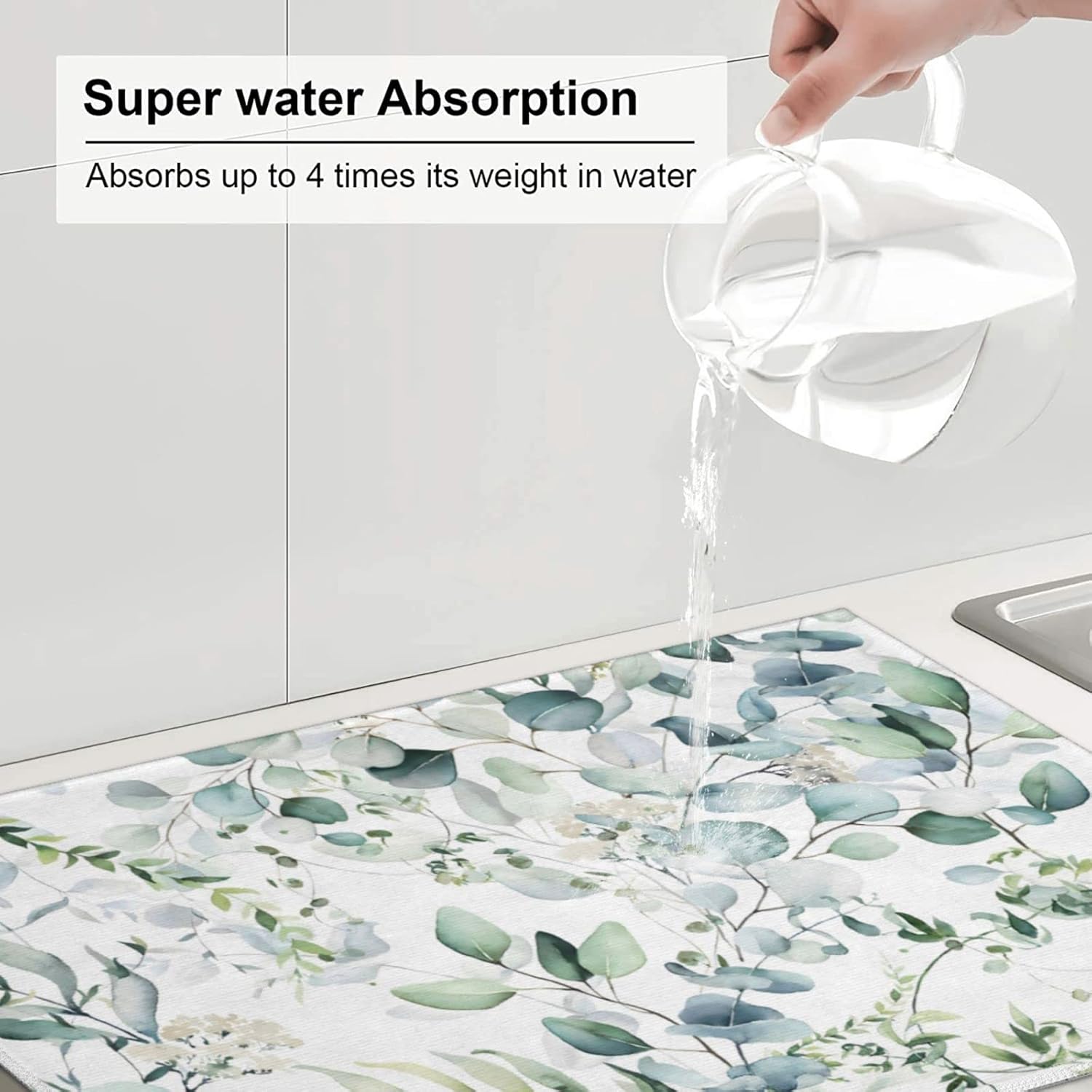 Green Floral Leaf Dish Drying Mat For Kitchen Counter 18 X 24 Inch Absorbent Dish Mat Reversible Drainer Drying Kitchen Mat