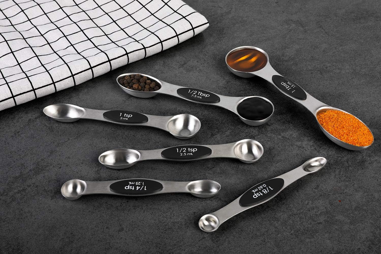 Magnetic Measuring Spoons Set Stainless Steel Dual Sided Stackable Teaspoon Tablespoon for Measuring Dry and Liquid Ingredients