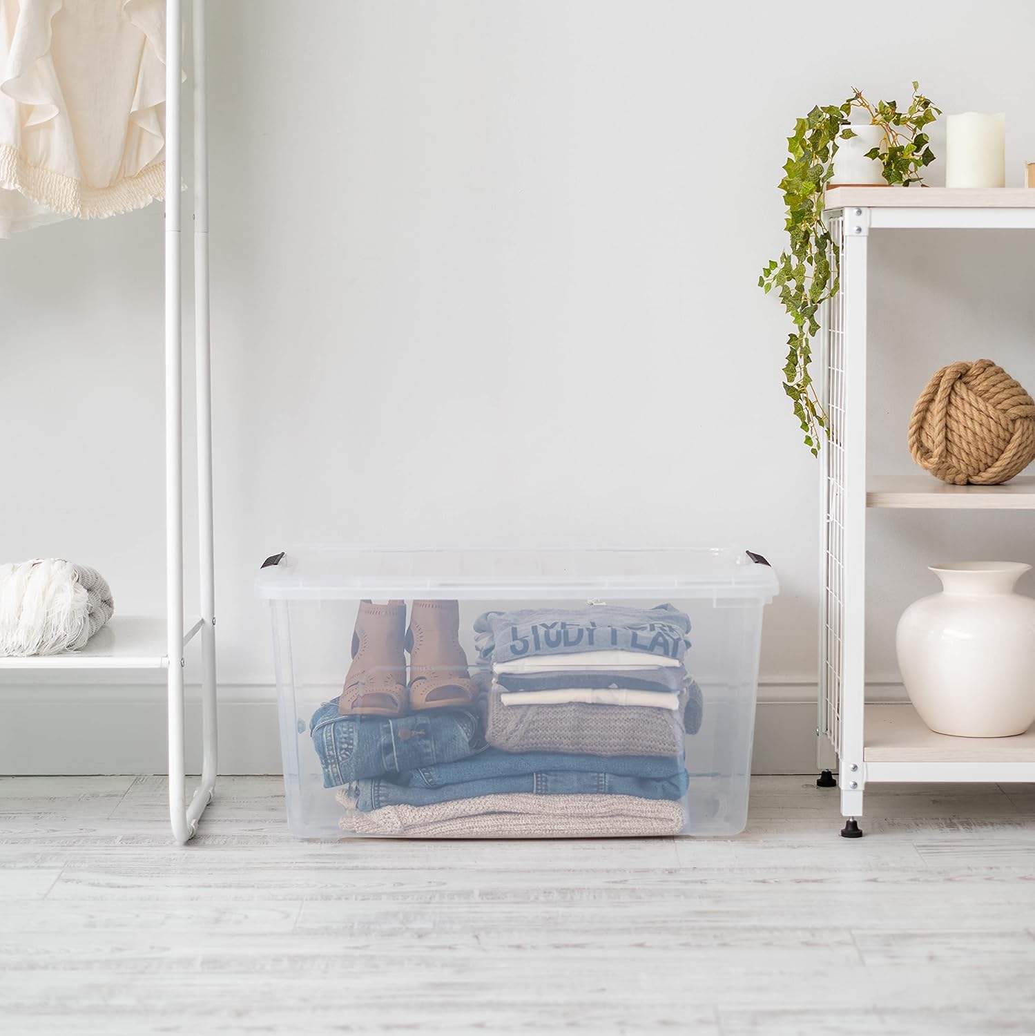 IRIS USA 72 Qt Stackable Plastic Storage Bins with Lids, 4 Pack - BPA-Free, Made in USA - See-Through Organizing Solution, Latches, Durable Nestable Containers, Secure Pull Handle - Clear