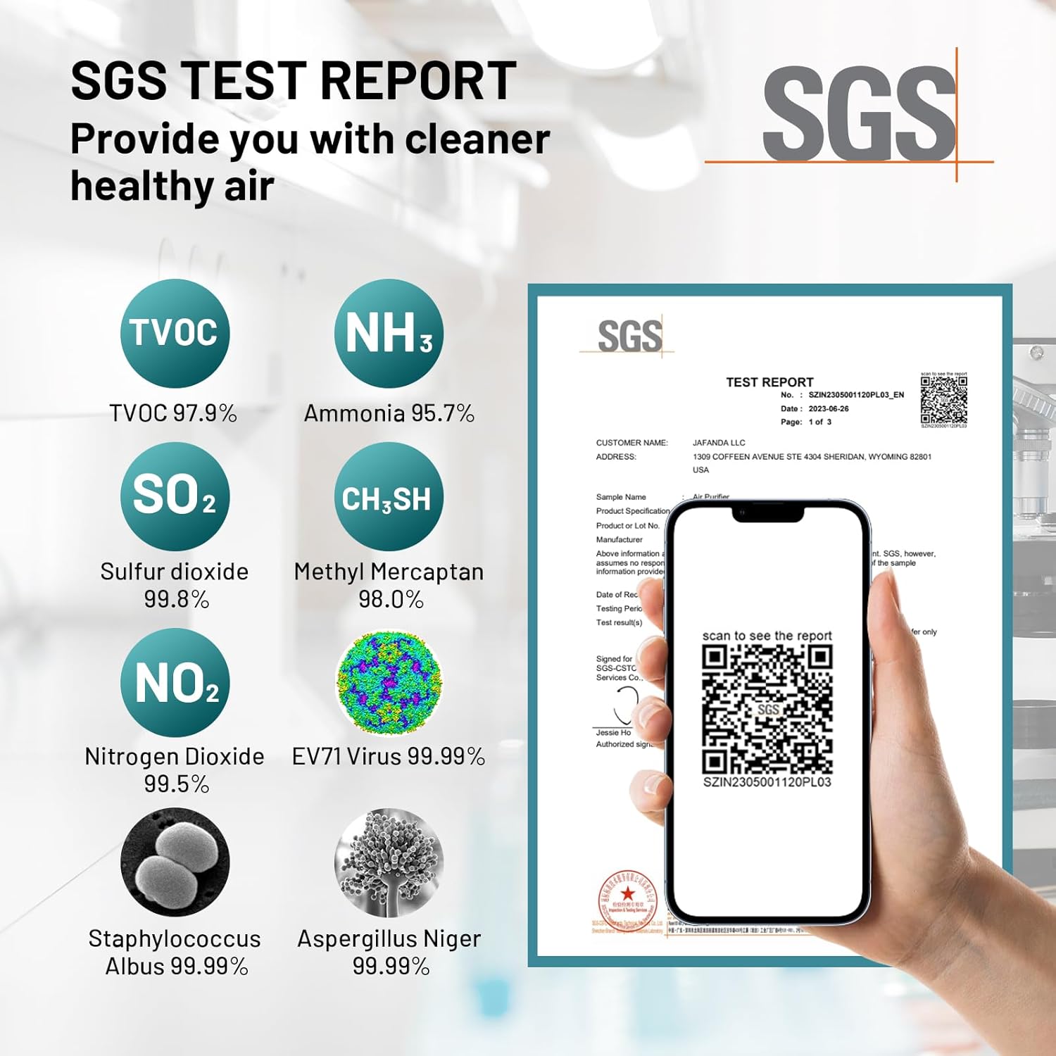 • Get the Best Air Filtration with Jafanda's Own Filters: Enjoy superior performance and lasting value with authentic Jafanda replacements (Search ORIG Filter-B0BTCPYNFY, Odor Air Filter-B0C2Y935P5, VOCs Air Filter-B0C1Z9HYFT). Steer clear of unreliable off-brand filters that compromise results and potentially shorten your air purifier's life.