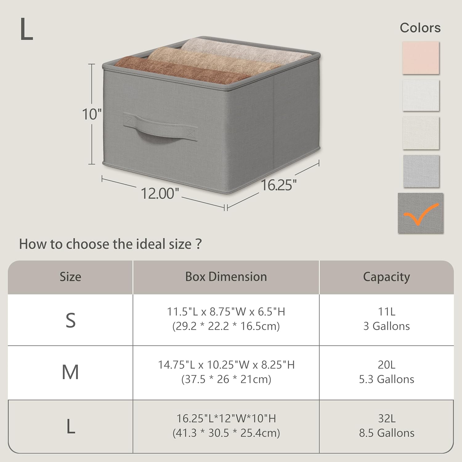• LARGE CAPACITY: Measuring 16.25" L*12" W*10" H, these fabric bins offer a generous 27L capacity, making it easy to store and organize bulky items like clothes, toys, books, and magazines.