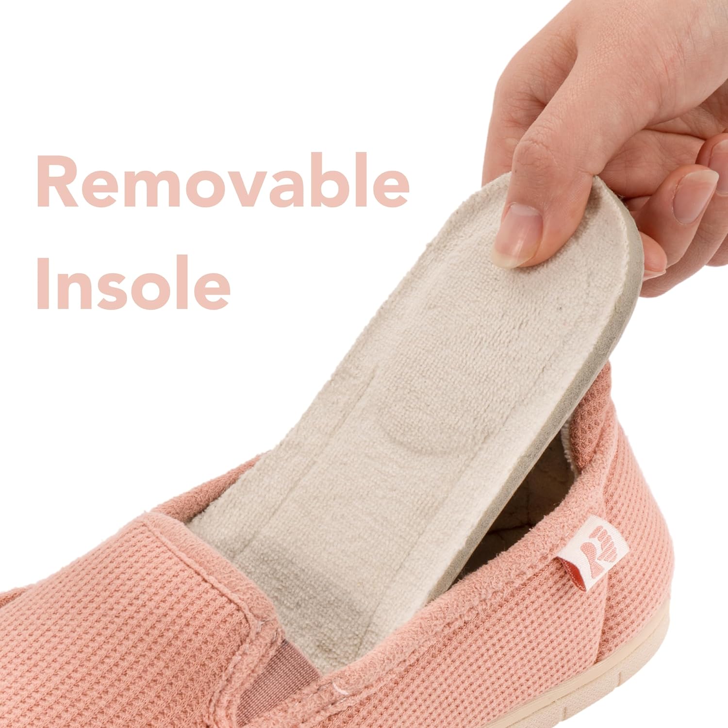 • Lightweight rubber soles lets you move quietly and effortlessly around the house; sturdy bottoms allow you to step outside quickly without switching shoes. Wear them to grab the mail, walk to the car, take out trash, etc.