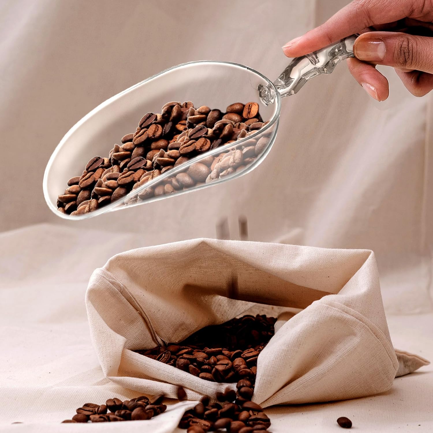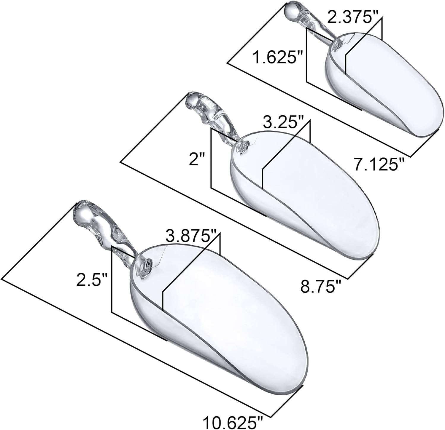 • [MULTIPLE USES] The scoop is good for vairous uses: ice cubes, beans, flour, popcorn, candy, baking ingredients, cereal, dry goods, pet food, bath salts, and more. A handy tool for your kitchen, bathroom, laundry room and bar.