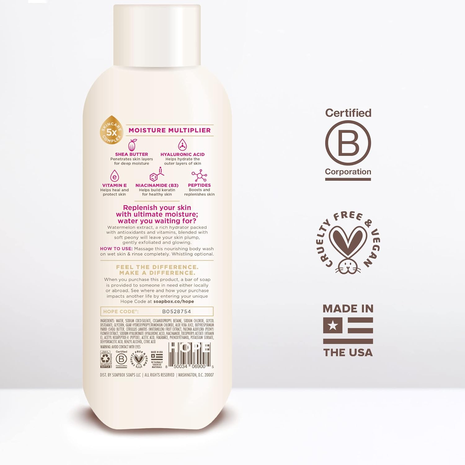 Soapbox Body Wash, Watermelon + Peony Body Wash for Women, Men, Vegan & Antioxidant Rich, Exfoliating, Moisturizing Soap with Shea Butter, Peptides & Keratin Promoting B3, 3 Pack, 20oz Each