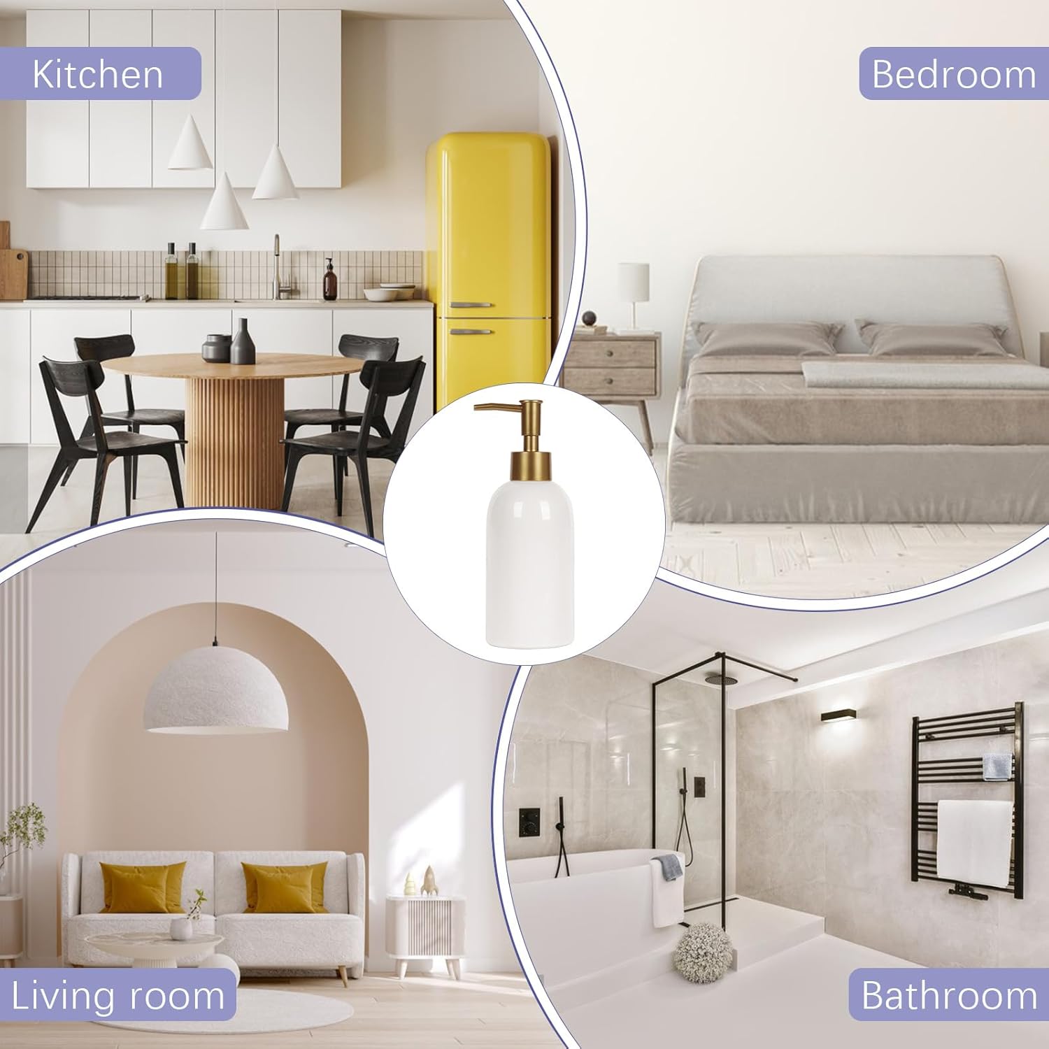 • Versatile Liquid Compatibility: This ceramic soap dispenser is designed for thicker liquids like lotion, hand sanitizer, shampoo, shower gel, and even laundry detergent. (Note: Avoid vigorous shaking during use to prevent spills.)