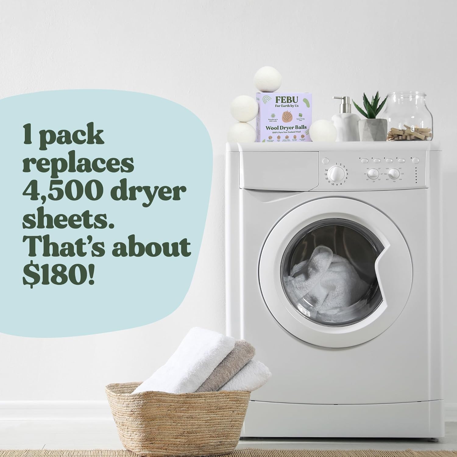 • FEBU DRYER BALLS SAVE YOU MONEY — 1 pack of FEBU natural wool dryer balls replace up to 4500 dryer sheets.