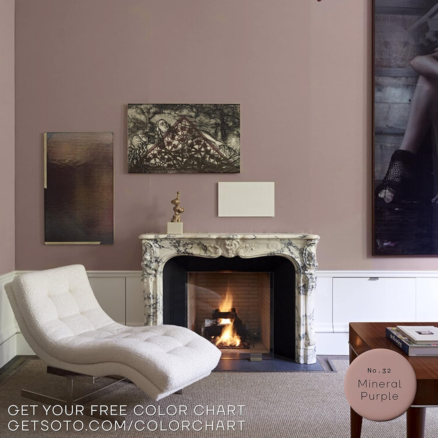 • No. 32 Mineral Purple — An earthy, brownish purple. *** We cannot guarantee an exact color match based on monitor representation alone due to variances in lighting, devices, and screens. Please order a Color Chart of the actual paint colors to determine your match before you order (or contact us for details). ***
