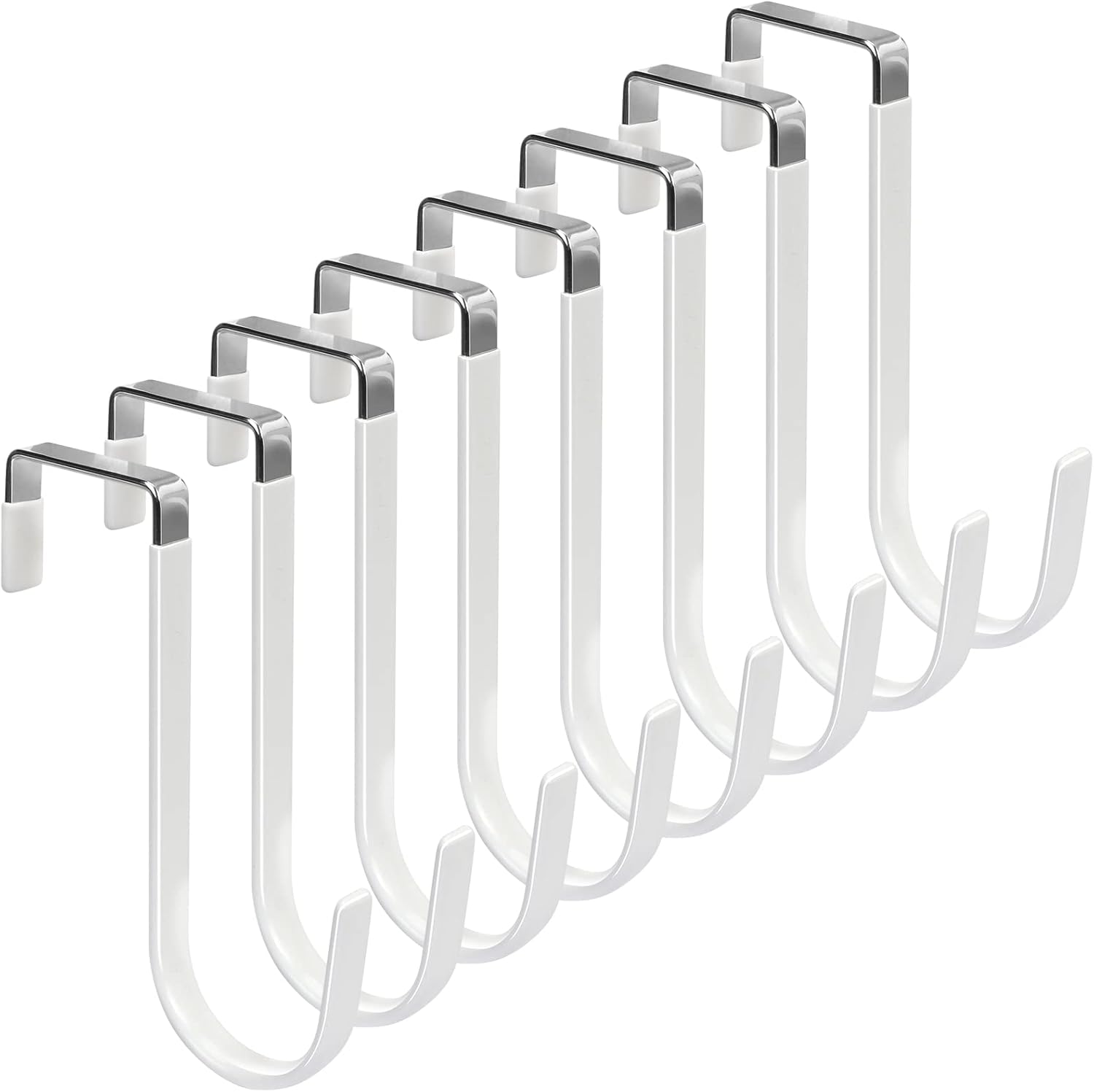 FYY Over the Door Hooks, 8 Pack Door Hangers Hooks with Rubber Prevent Scratches Heavy Duty Organizer Hooks for Living Room, Bathroom, Bedroom, Kitchen Hanging Clothes, Towels, Hats, Coats, Bags White