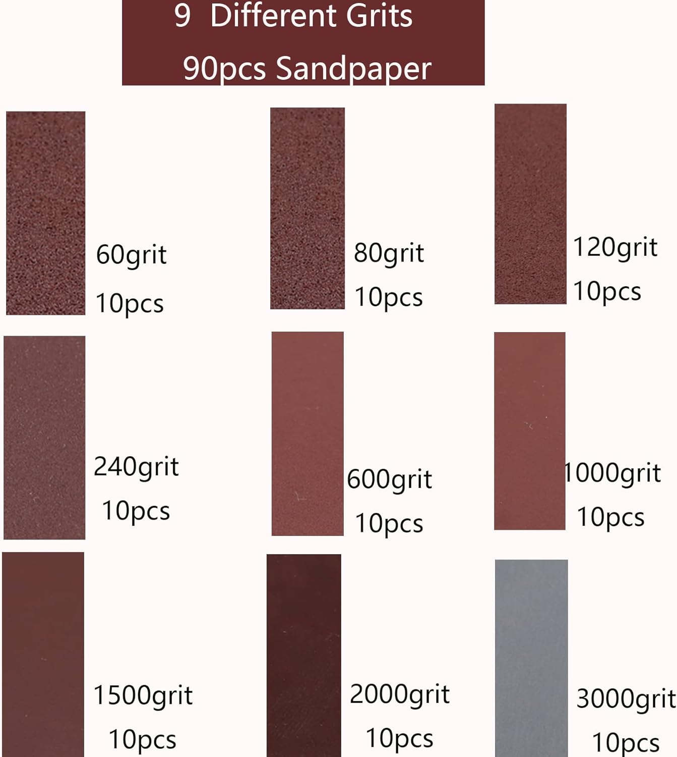 • 【Car Headlight Restoration and Polishing Kit】Package Includes 90pcs Sanding Discs(60/80/120/240/600/1000/1500/2000 /3000 each 10pcs) 6pcs 3" Sponge Polishing Pads, 2pcs Wool Buffer Pads, 2pcs Drill Adapter, and 1pcs Backing Pad, 1pcs Interface Pad, 1pcs Fast Finshing Pad and 1pcs Masking Tape