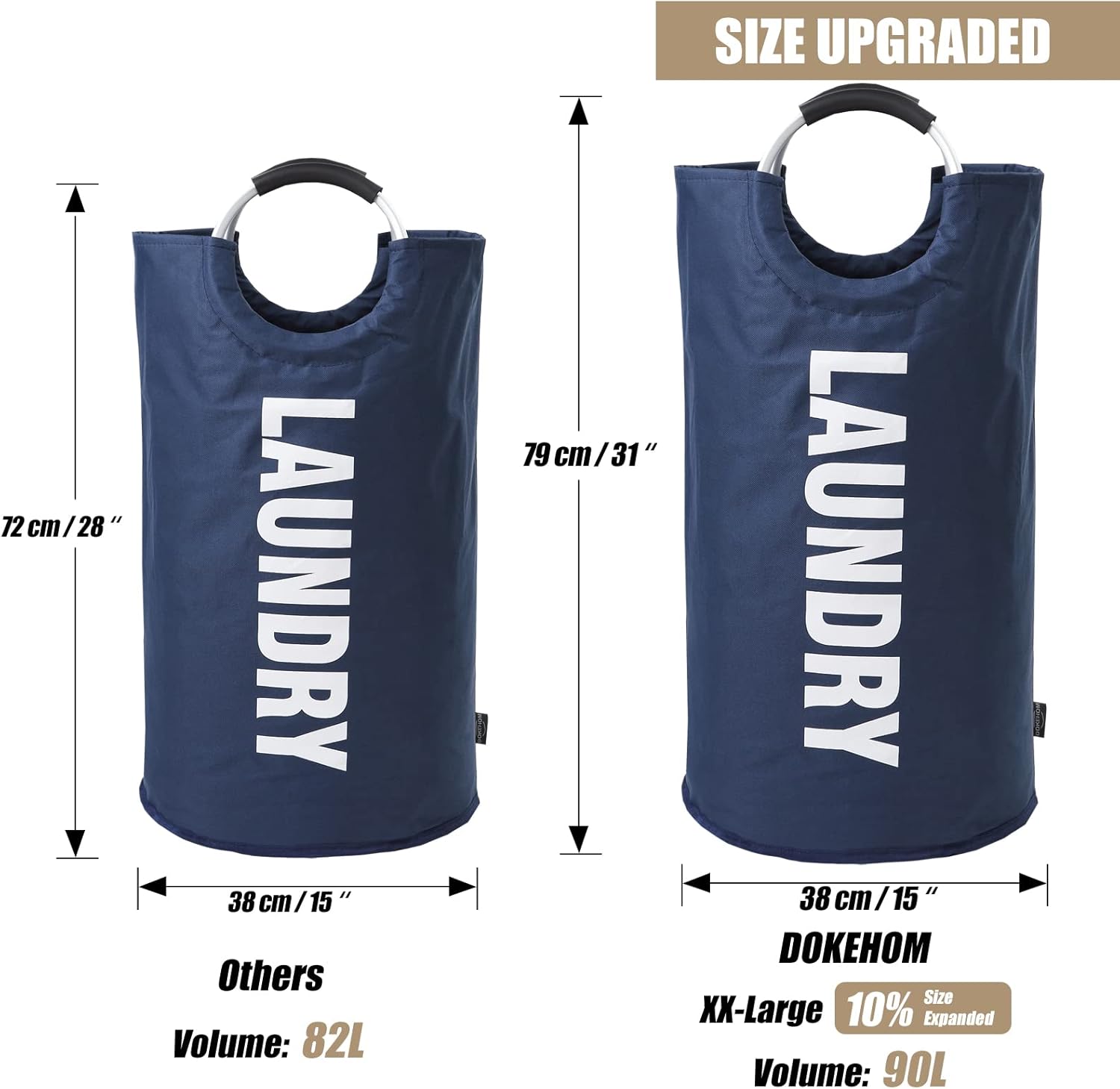 DOKEHOM 90L Large Laundry Basket, Collapsible Laundry Bag, Freestanding Tall Clothes Hamper, Foldable Washing Bin (Dark Blue)