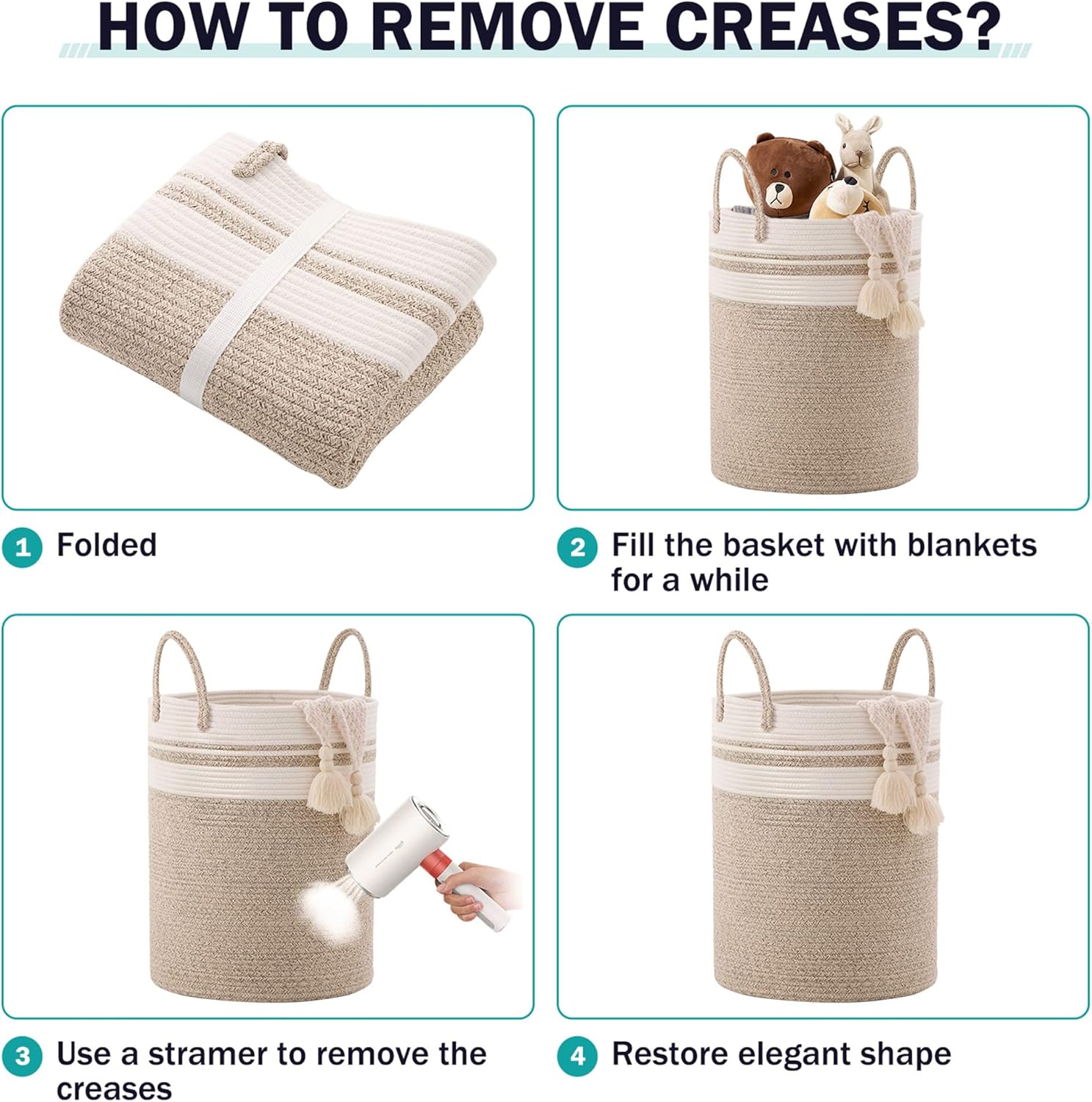 • 【Multipurpose Storage Baskets】100L capacity basket can keep things organized in a stylish and decorative way. You can use them to store extra towels, blanket, clothing, toys for baby and dogs, books, pillows or any other household items around the house, anything you can imagine
