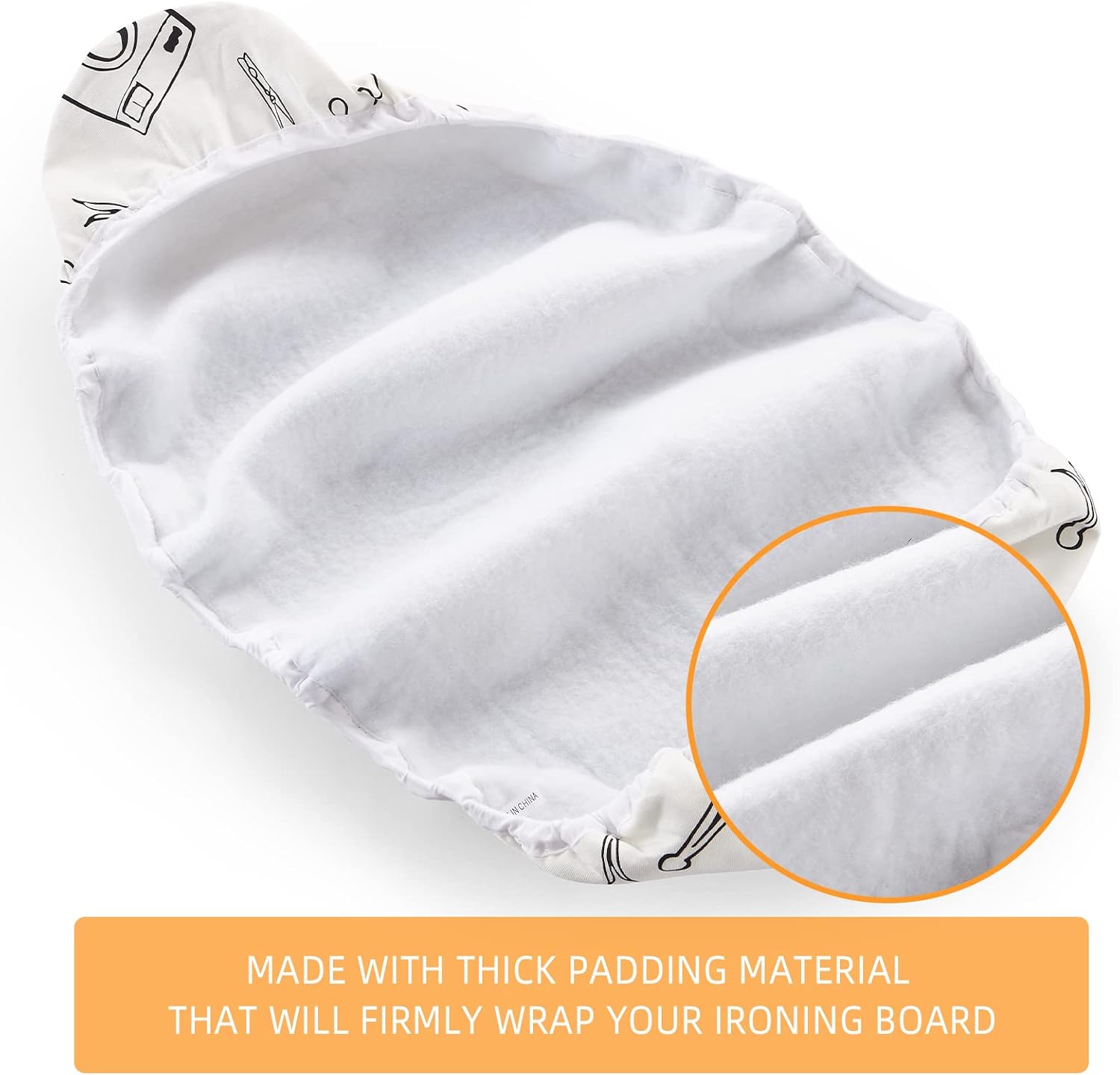 • EXTRA THICK MATERIAL FOR BETTER IRONING: This ironing board cover adopts natural breathable cotton with scorch resistant finish as cover. Using ultra thick stitched fibers, the thickness can reach 6mm. This synthetic fiber evenly radiate heat and steam, achieve high temperature ironing and safer